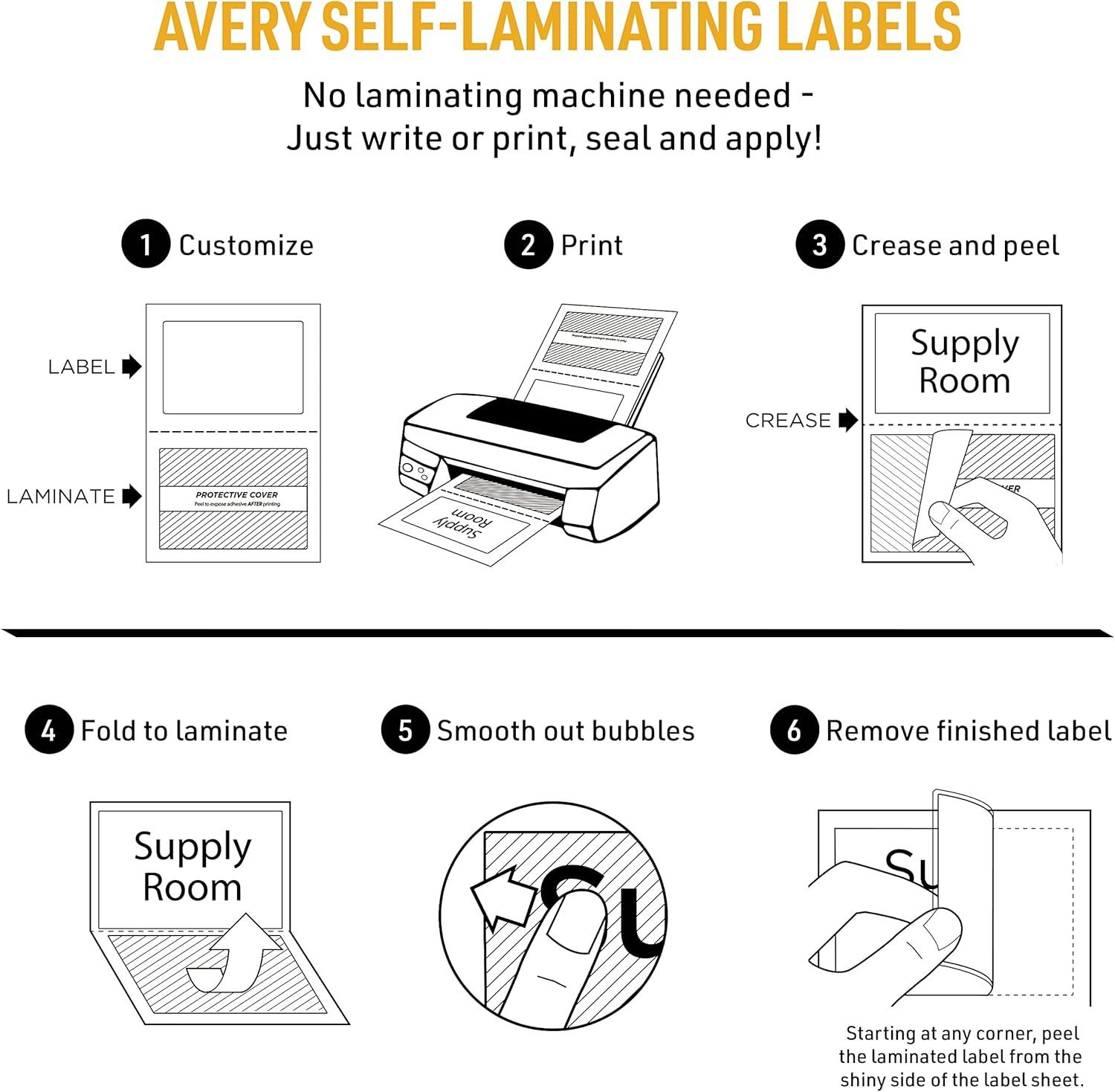 Avery 00756 Easy Align Self-Laminating ID Labels, Laser/Inkjet, 2 15/16 x 3 5/16, White (Pack of 100)(5" x 7-1/2")