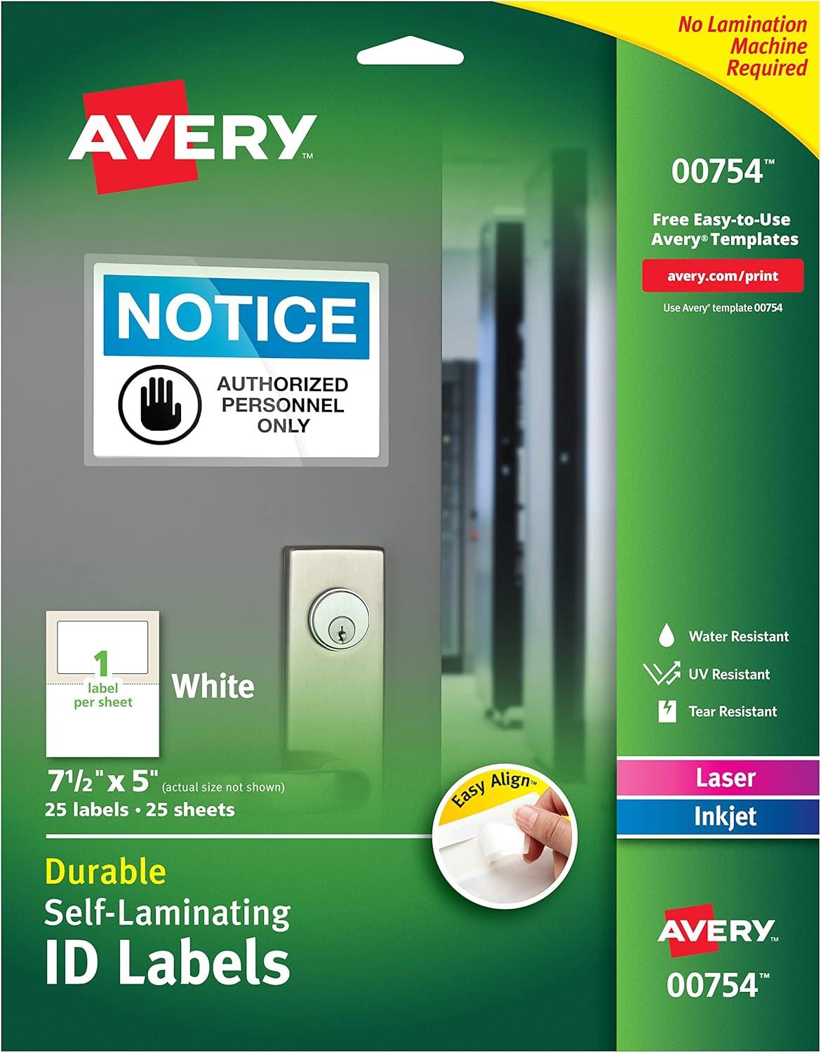 Avery 00756 Easy Align Self-Laminating ID Labels, Laser/Inkjet, 2 15/16 x 3 5/16, White (Pack of 100)(5″ x 7-1/2″)