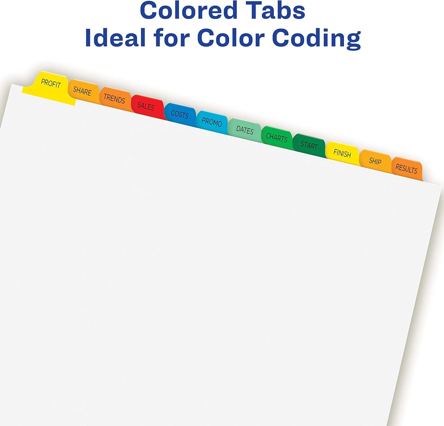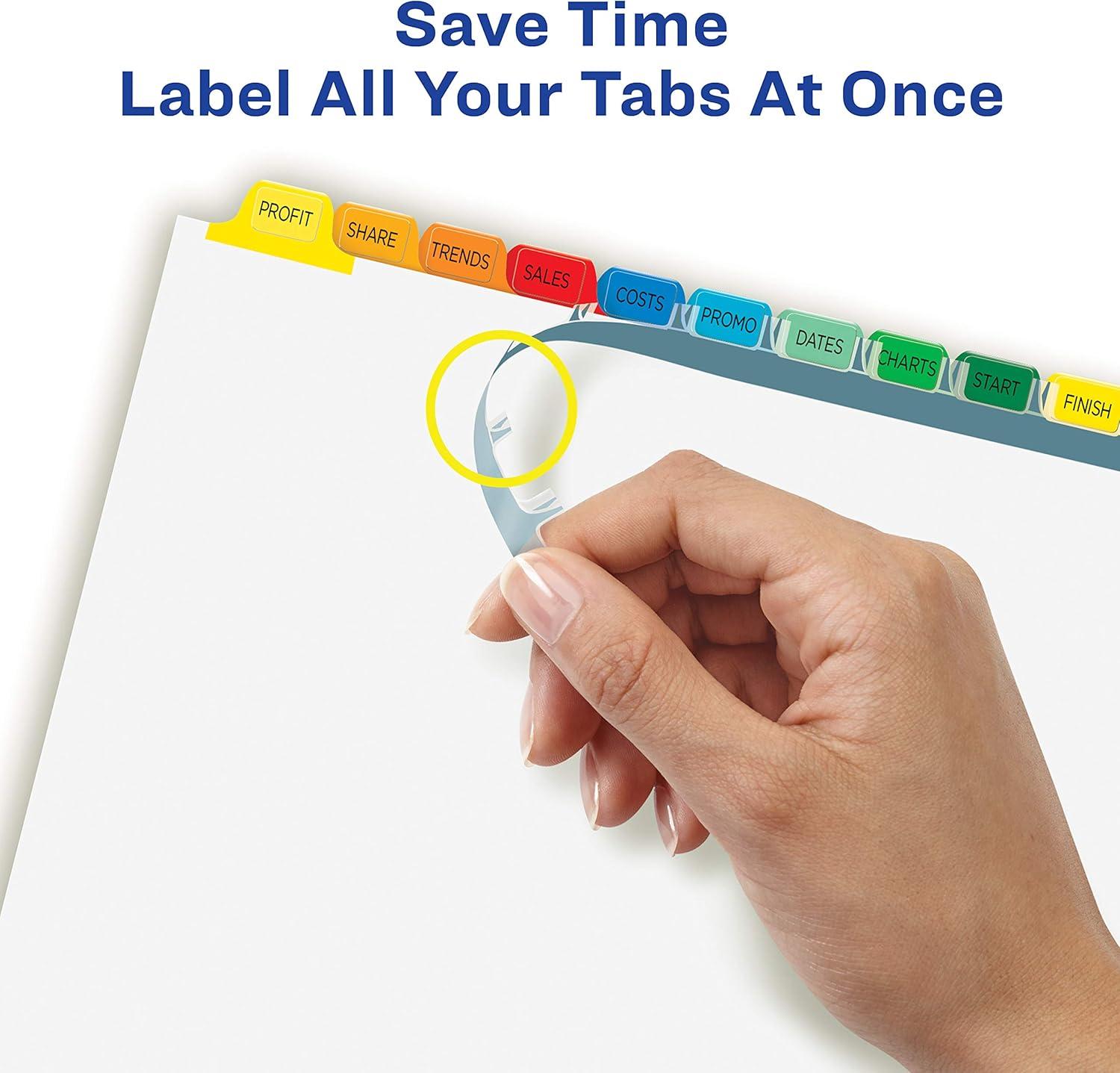 Avery 12 Tab Dividers for 3 Ring Binder, Easy Print & Apply Clear Label Strip, Index Maker Customizable Multicolor Tabs, 5 Sets (11405)(Multi-color)