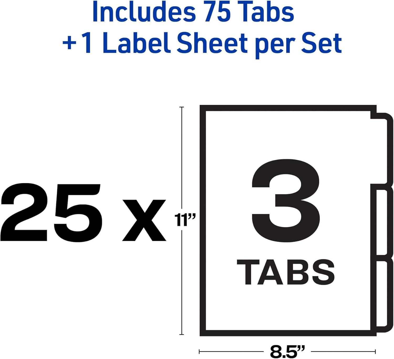 Avery 3-Tab Unpunched Dividers for Use with Any Binding System, Easy Print & Apply Clear Label Strip, Index Maker Customizable White Tabs, 25 Sets (11442)(25 Sets)