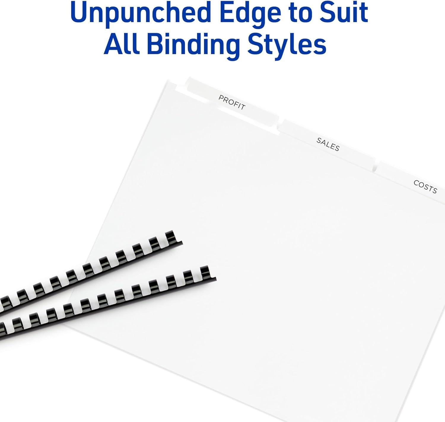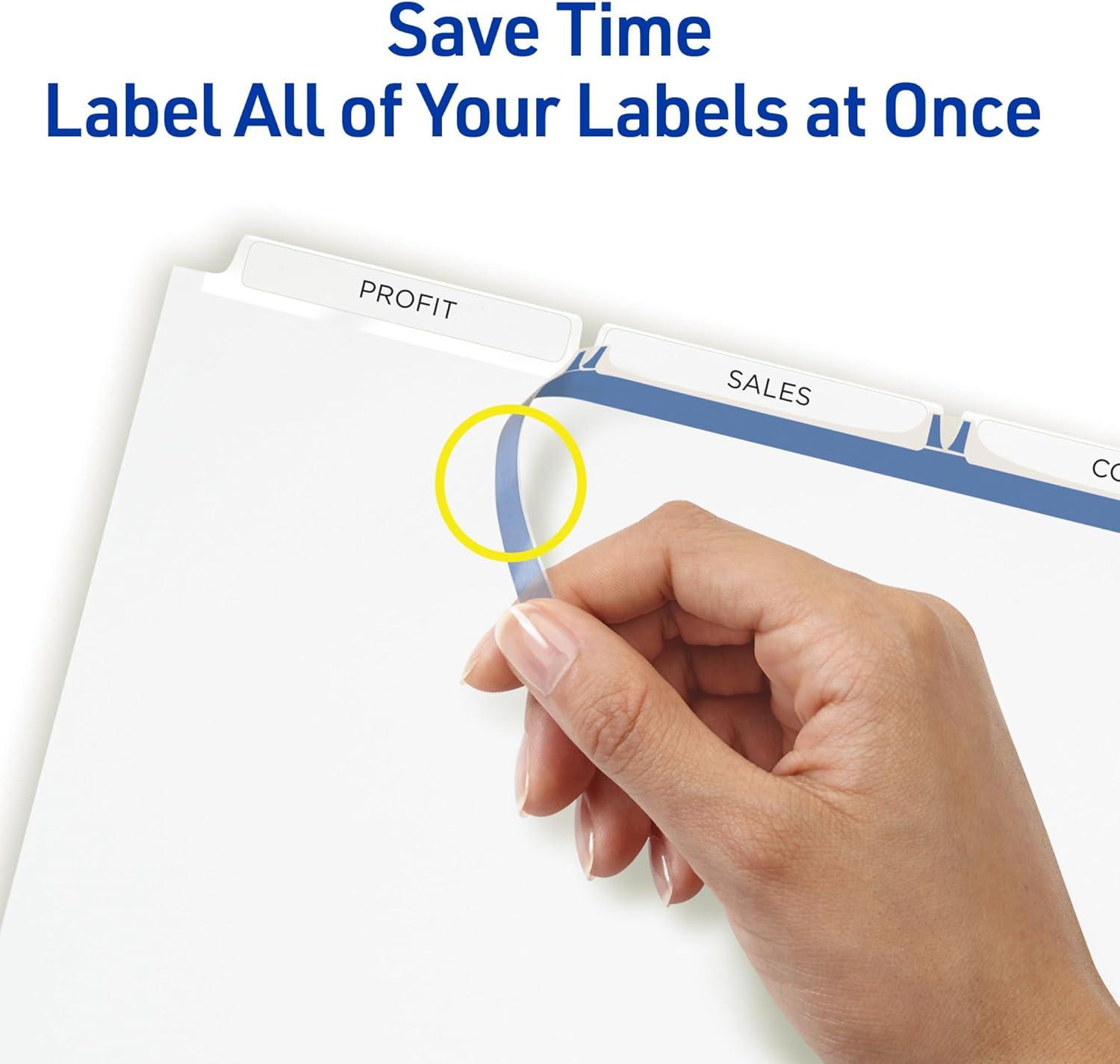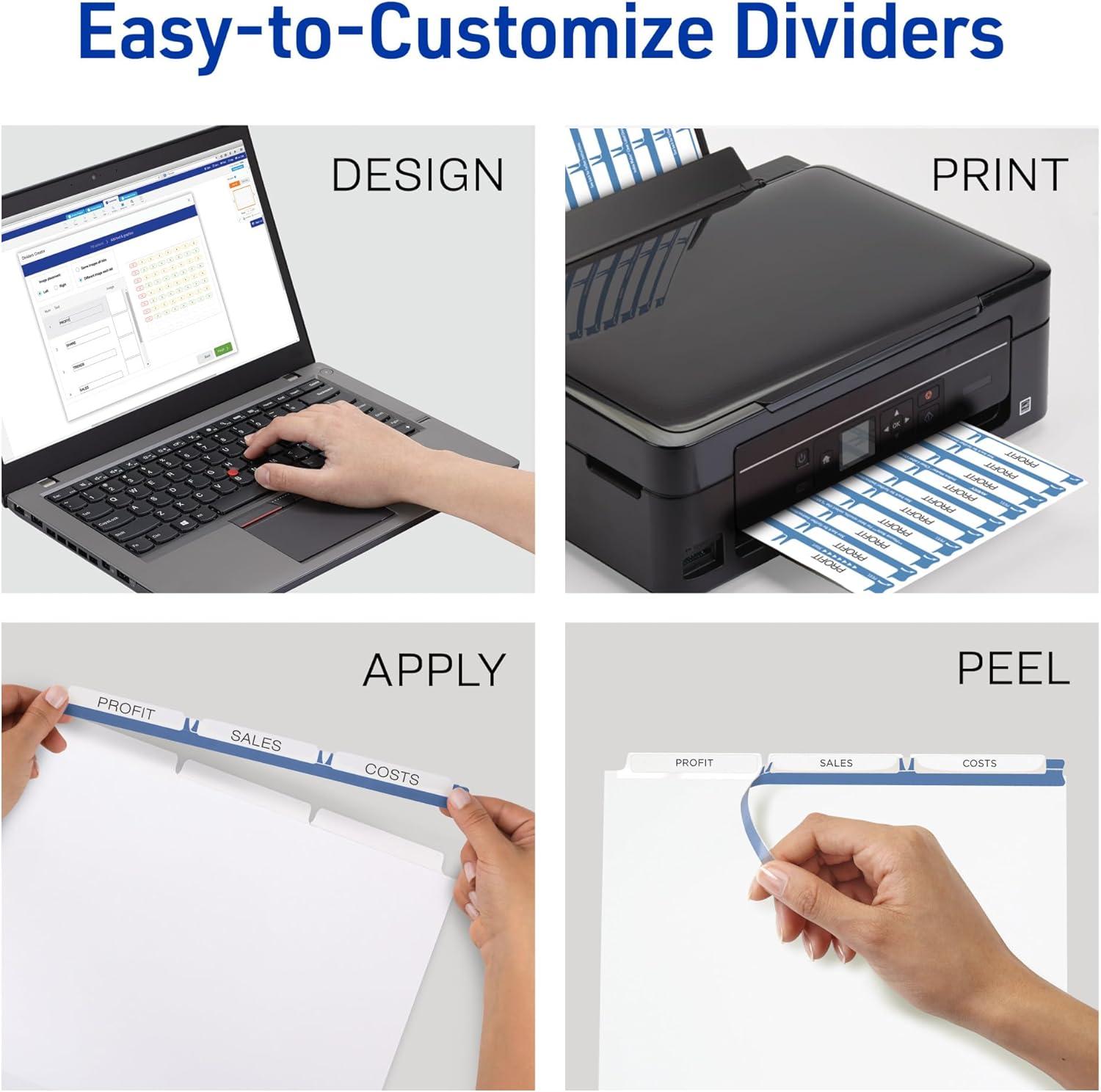 Avery 5 Tab Unpunched Dividers for Use with Any Binding System, Easy Print & Apply Clear Label Strip, Index Maker Customizable White Tabs, 25 Sets (11443)(25 Sets)