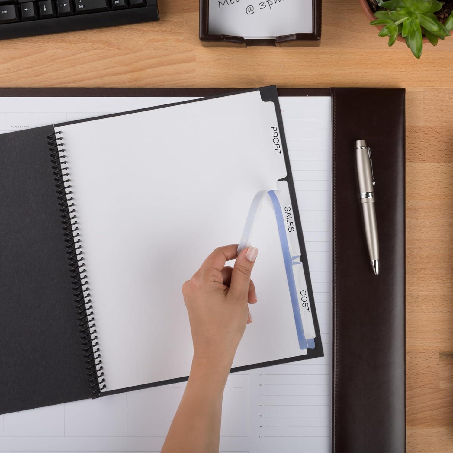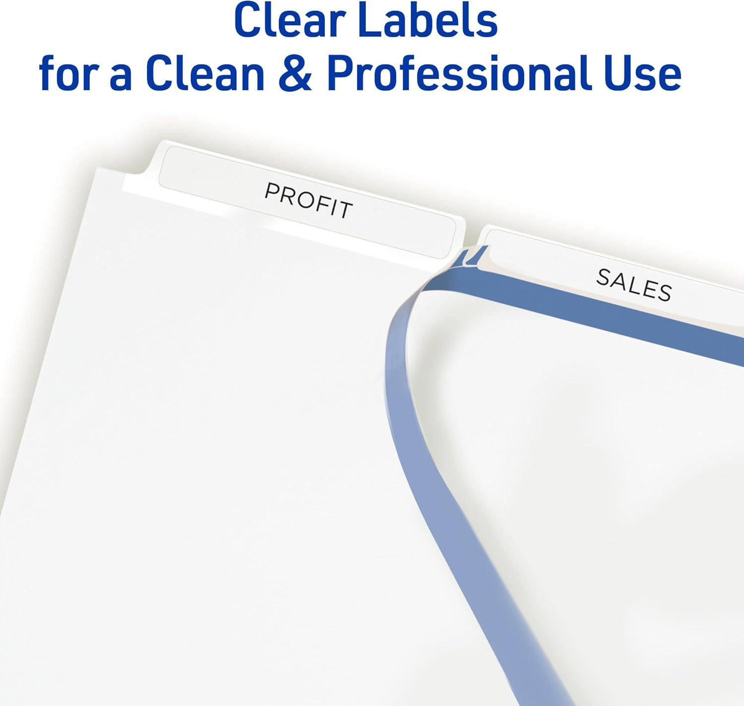 Get a professional, printed-on look with clear labels that virtually disappear on the white divider tabs