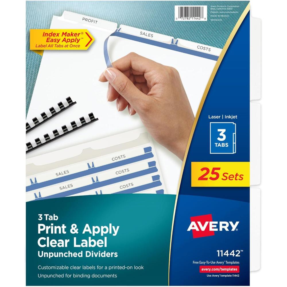 imageAvery 3Tab Unpunched Dividers for Use with Any Binding System Easy Print ampamp Apply Clear Label Strip Index Maker Customizable White Tabs 25 Sets 114425 Sets Pack of 10