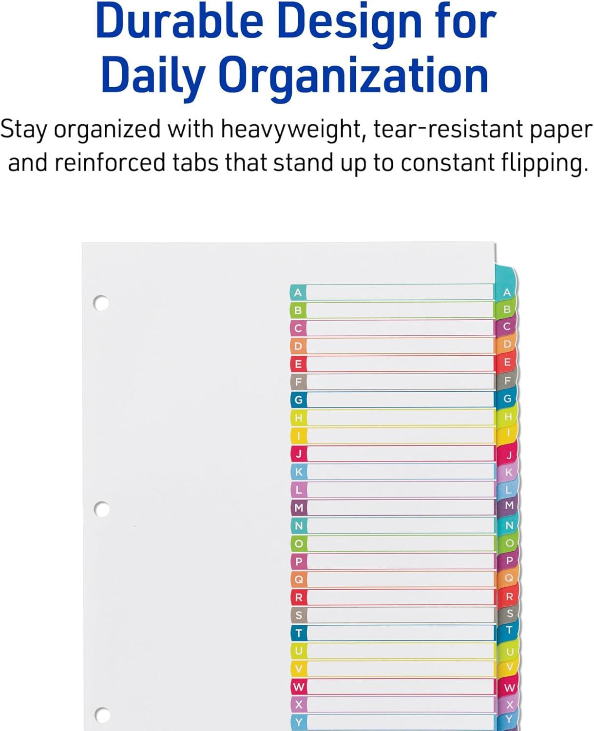 Avery Extra-Wide Dividers for 3 Ring Binders, 26 Tabs per Set, Customizable Table of Contents, Multicolor Tabs, Works Great with Sheet Protectors (11166)(White)
