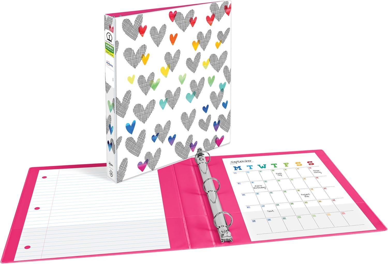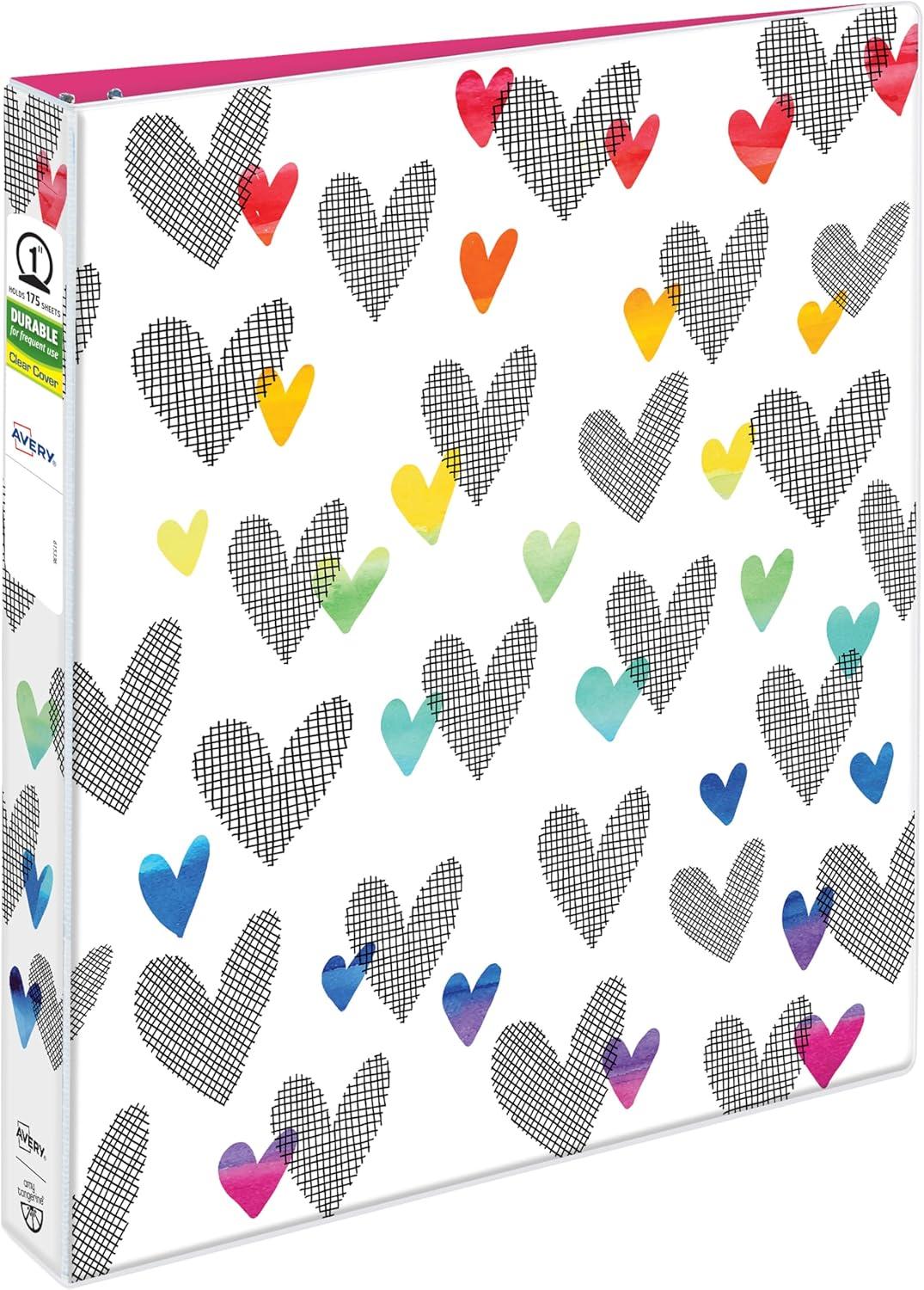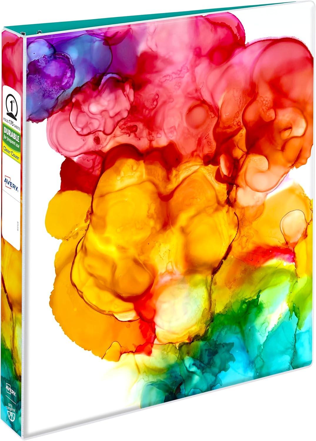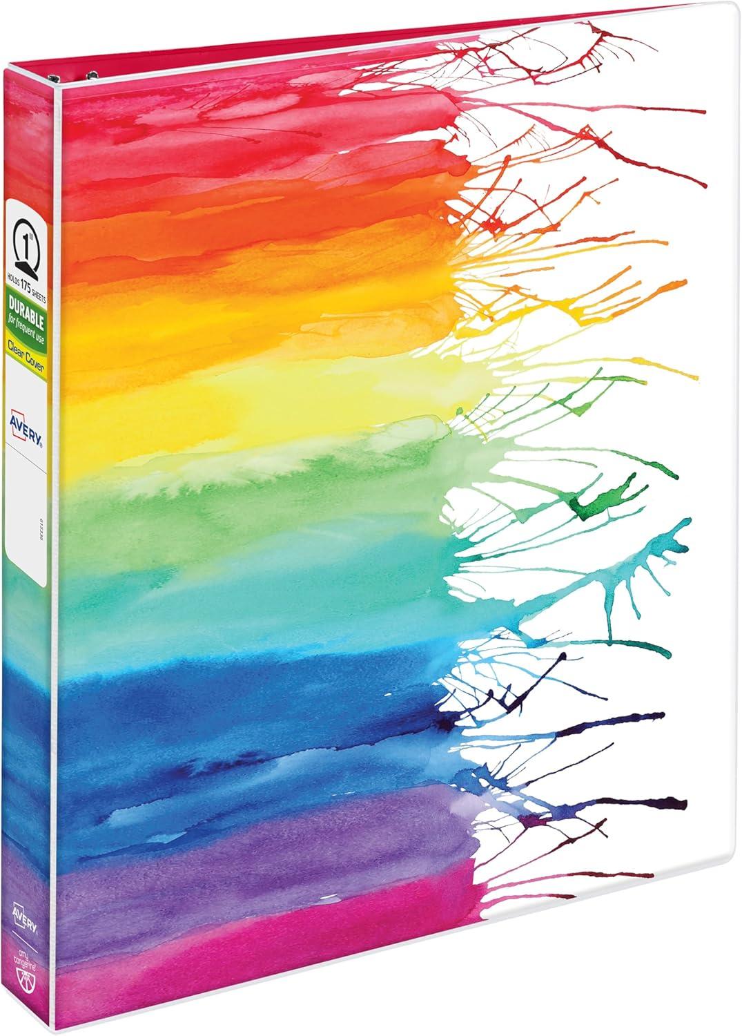 Attitude is everything! Brighten your day with this Amy Tangerine Designer Collection Durable View Fashion 3 ring binder preprinted with the Rainbow Inkblot design. The binder's durable construction is ideal for frequent referencing, and the clear cover and spine allow for easy personalization. The sturdy 1″ round rings hold 175 pages and the back-mounted rings enable pages to lay flat. Two interior pockets are perfect for storing loose notes, paperwork and documents. Built to last, these Avery durable binders will stand up to everyday use in your backpack and at home. Pair with other vivid and colorful binders, mini binders and dividers from the Amy Tangerine Designer Collection to complete the look.