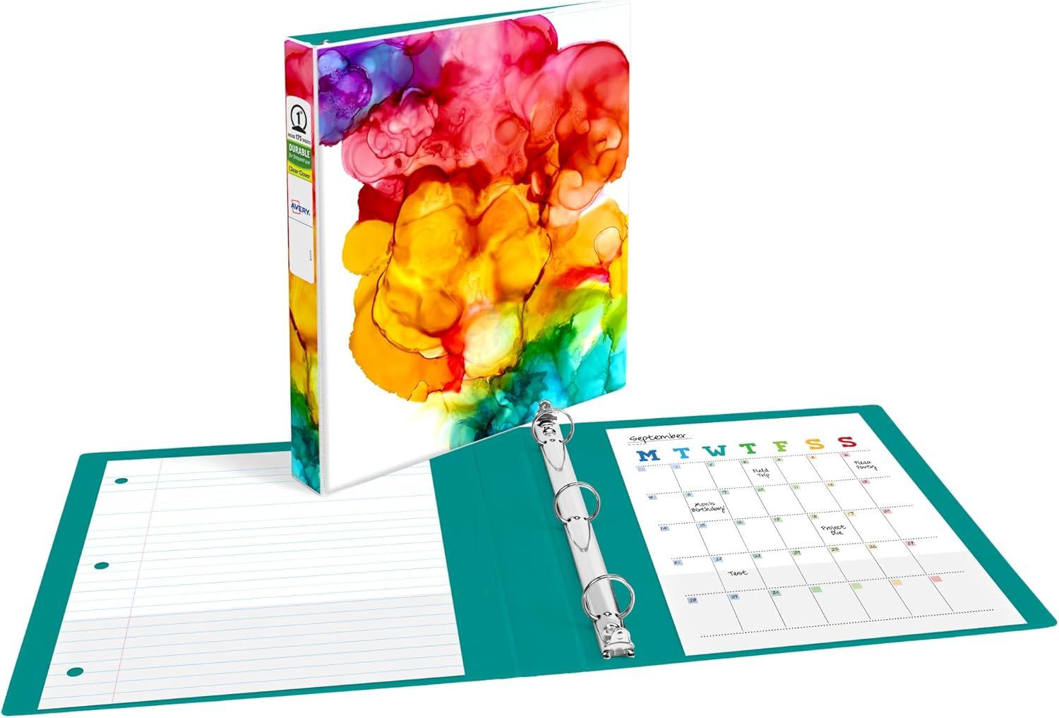 Avery + Amy Tangerine Designer Collection Binder, 1 Inch Round Rings, 175-Sheet Capacity, Rainbow Inkblot (28341)(Watercolor Rainbow)