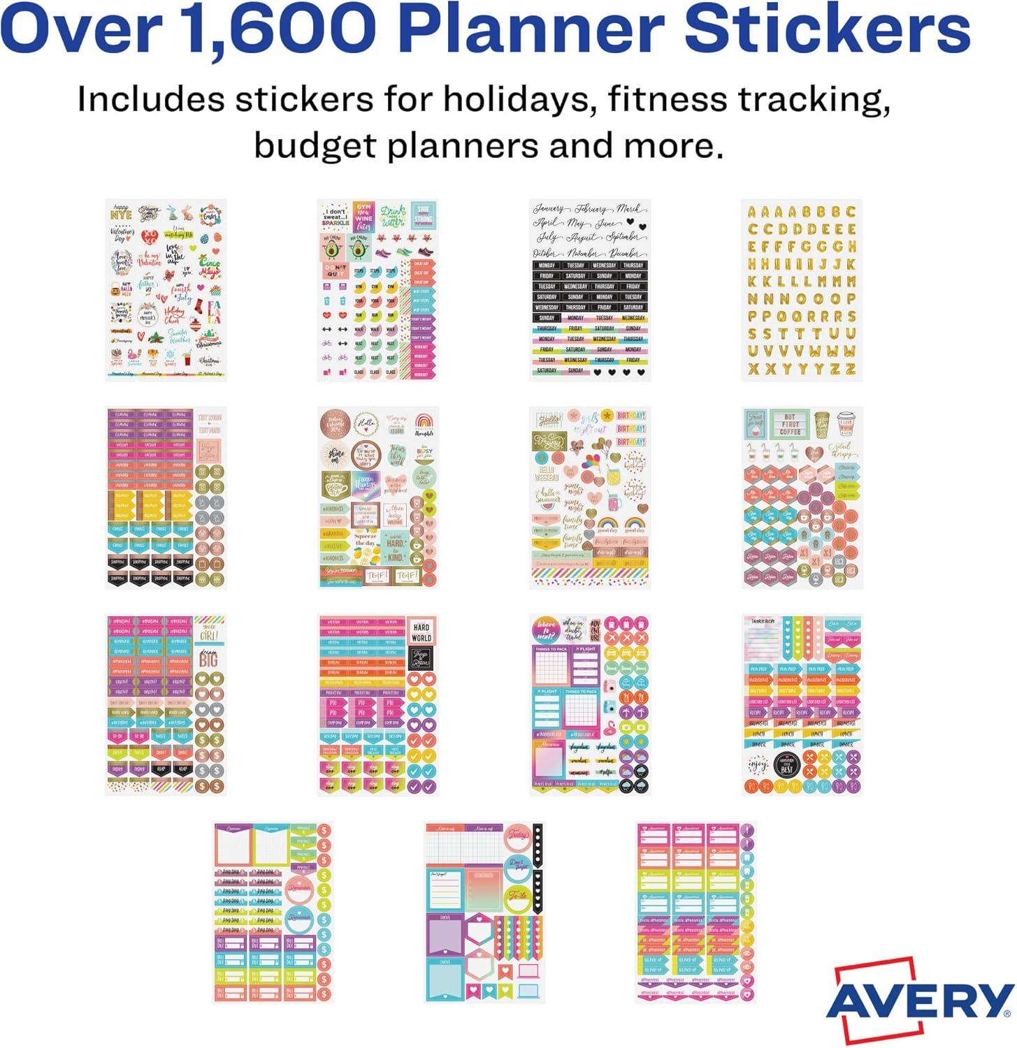 Avery Teacher Planner Stickers Pack, 30 Sticker Sheets, 1,430 Total, Education Planners, Journals or Calendars (6781)(Budget Pack)