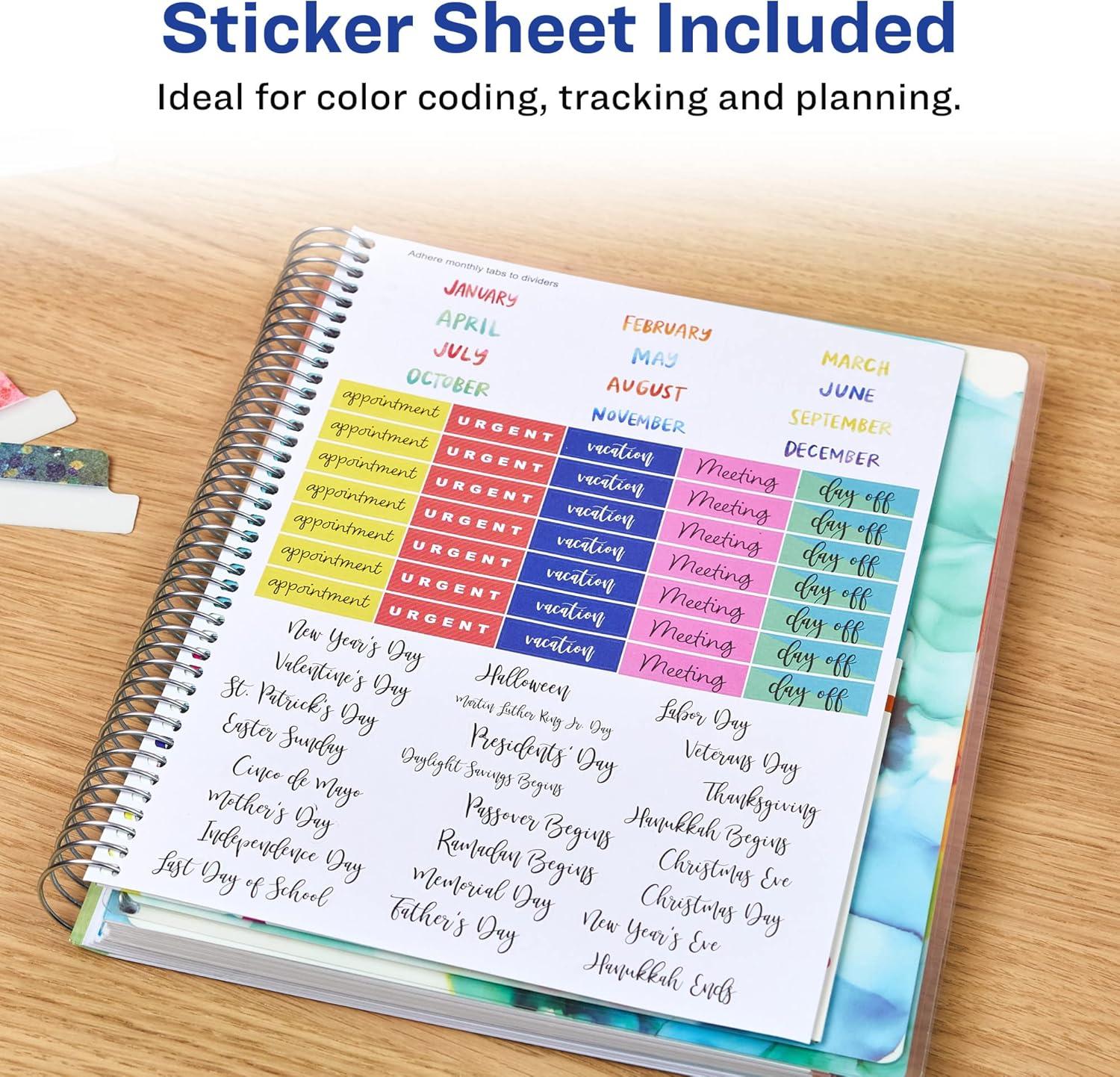 imageAvery  Amy Tangerine Designer Collection Planner Undated 12Month Planner with Stickers 825quot x 975quot Rainbow Paint Design 29880Watercolor Inkblot