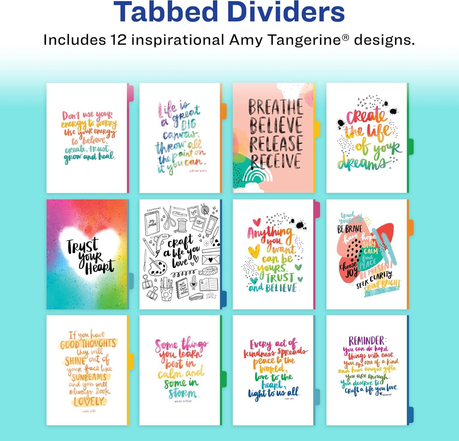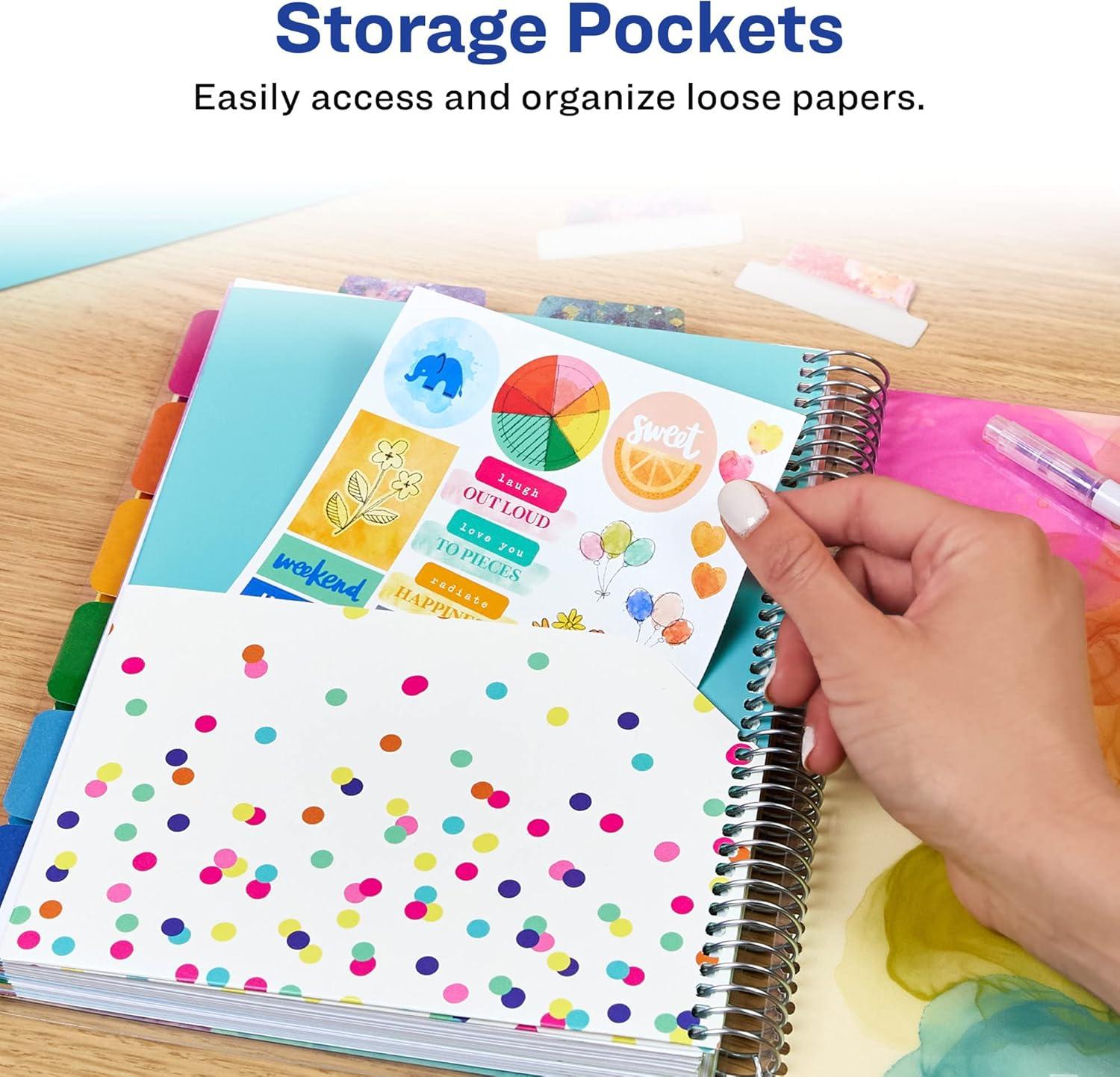 Your plans, hopes and dreams matter as much as the memories you make. Write things down, be intentional and stay organized throughout the year with Avery 29880 Planners in the Rainbow Paint design from the Avery + Amy Tangerine Designer Collection. Title your undated 12 monthly tabbed dividers, using the accompanying monthly tab title stickers. This planner features a weekly-two page horizontal spread that lets you view your week at a glance. The artful designs adds a big splash of color and a tone of positive energy to each single day. Designed to last, the covers are made with water-resistant and tear-proof PVC, and inside covers double as a wet or dry erase dashboard. Each page uses smooth, ultra-white 70lb / 120g uncoated sheets that complement most pens and are designed to resistant smudging, bleeding and feathering. The spiral-bound planners lay flat allowing you to create your monthly or weekly works of art with ease. Also included is a sheet of planner stickers that work perfectly within the preprinted layouts, two extra pockets for loose sheets and extra note pages for drawings, diagrams and future planning. Let’s get those creative juices flowing!