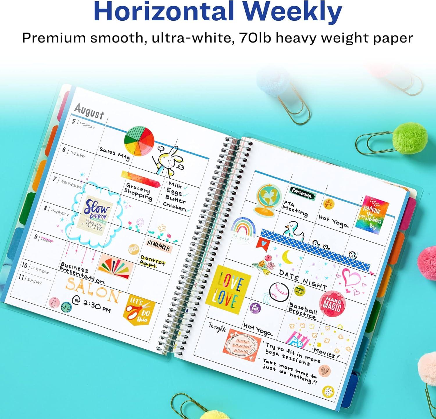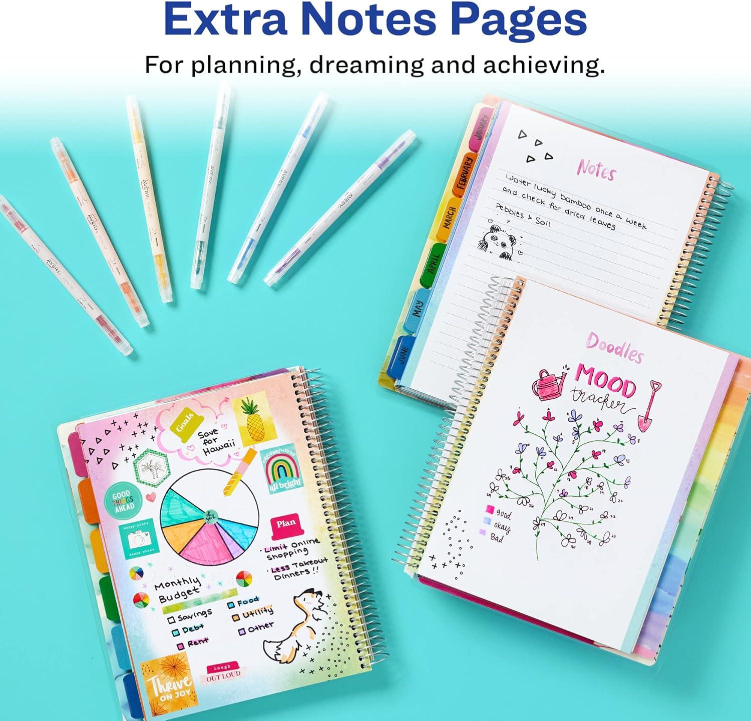 imageAvery  Amy Tangerine Designer Collection Planner Undated 12Month Planner with Stickers 825quot x 975quot Rainbow Paint Design 29880Rainbow Paint