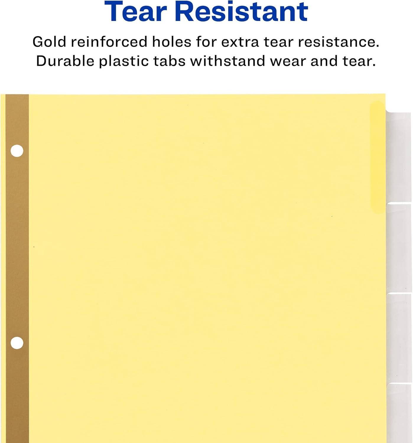 Keep your files organized with Avery Big Tab 5-tab binder dividers with clear insertable tabs, buff-colored paper and tear-resistant laminated holes