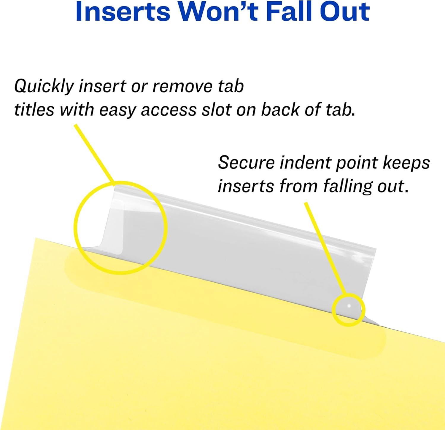 Each 3-ring binder divider tab features an easy access slot as well as a secure indent point to lock inserts in place