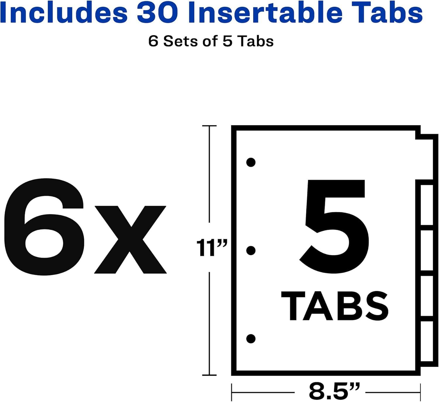 Avery Big Tab Insertable Dividers for 3 Ring Binders, 5-Tab Sets, Buff Paper, Clear Tabs, 6 Binder Divider Sets (26177)