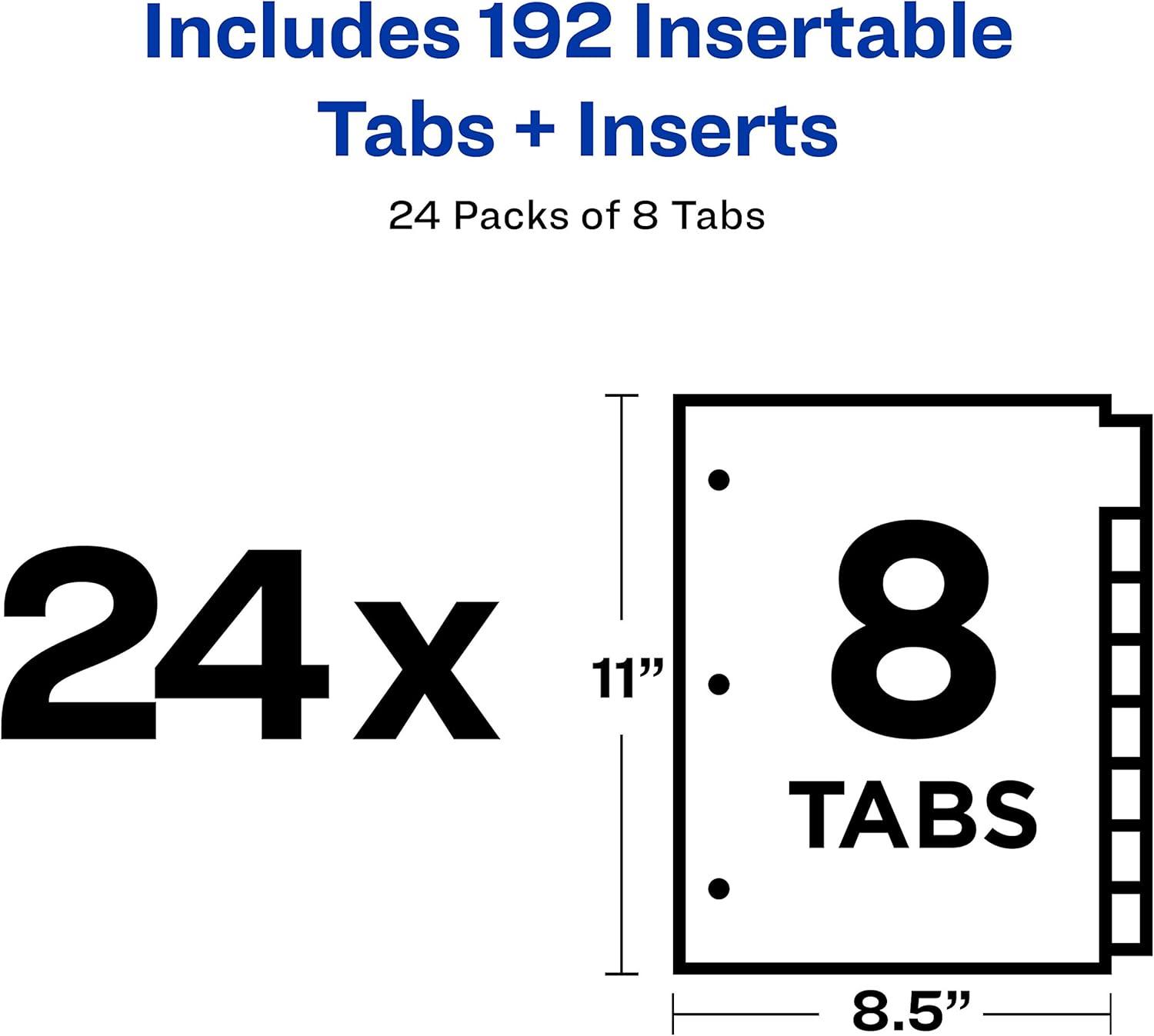 Avery Big Tab Insertable Dividers for 3 Ring Binders, 8-Tab Set, Buff Paper, Clear Tabs, Binder Divider Value Pack of 11112, 24 Sets Total (11115)(2 pack)