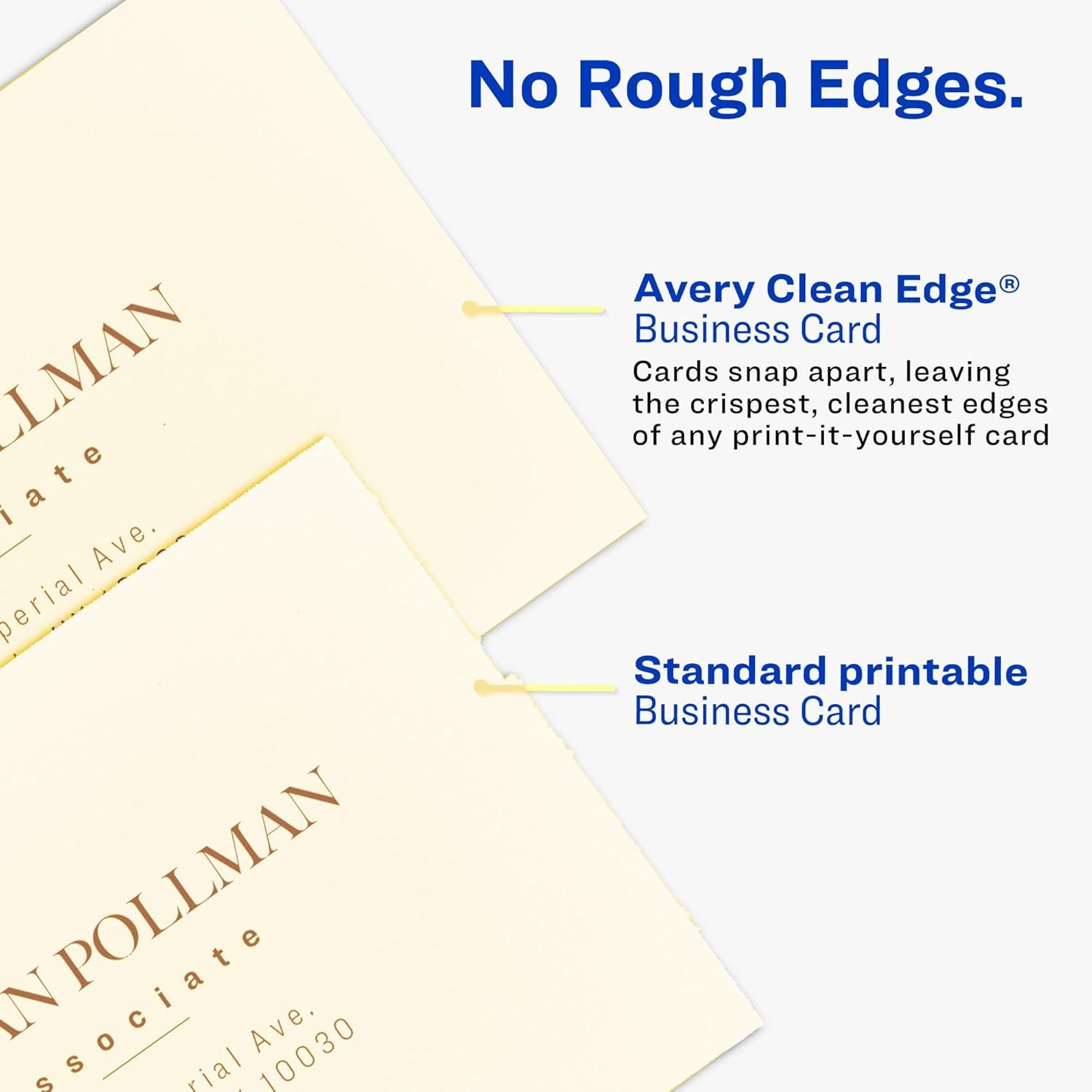 Avery Clean Edge Printable Business Cards with Sure Feed Technology, 2" x 3.5", Ivory, 200 Blank Cards for Laser Printers (5876)(One Size)