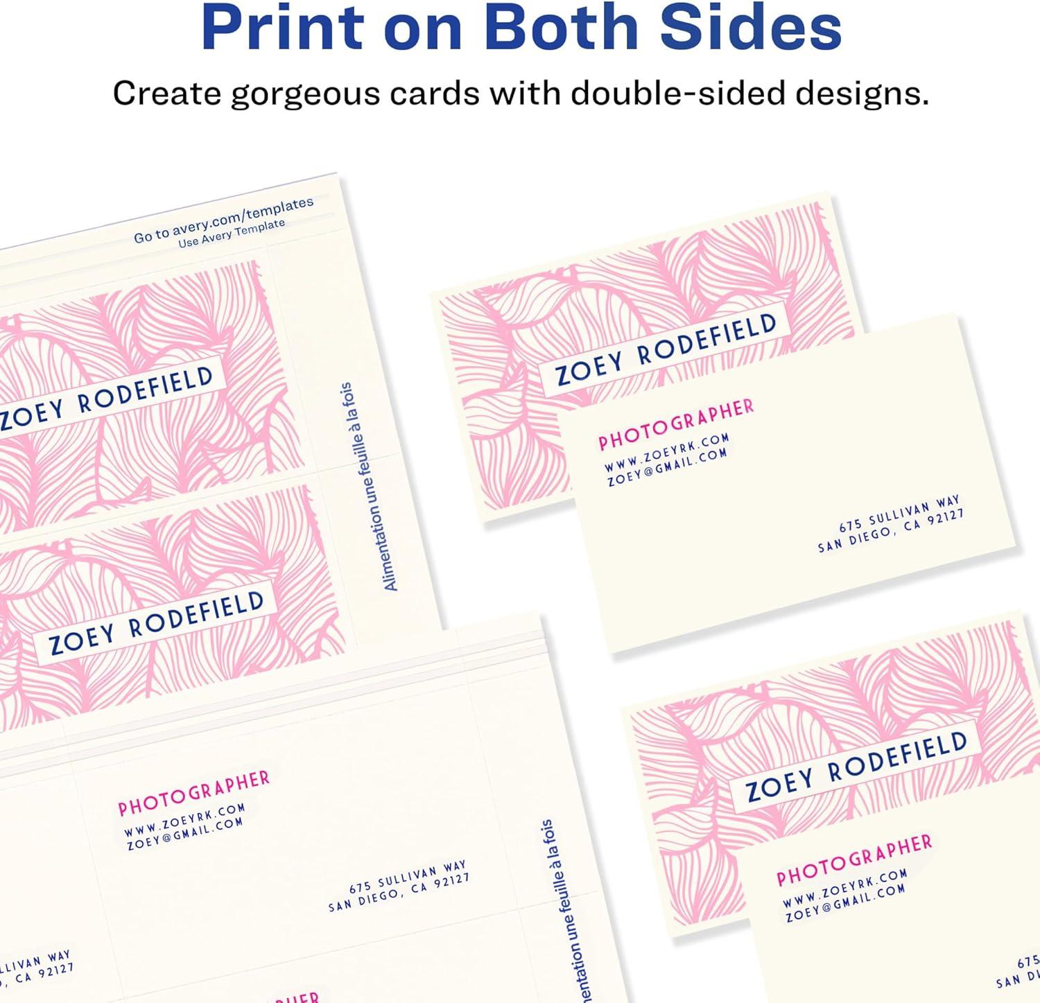 Each sheet of business cards features proprietary Avery Sure Feed technology designed to help with alignment and reduce printer jams
