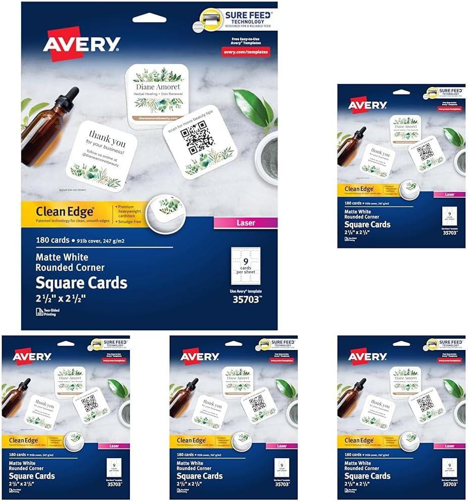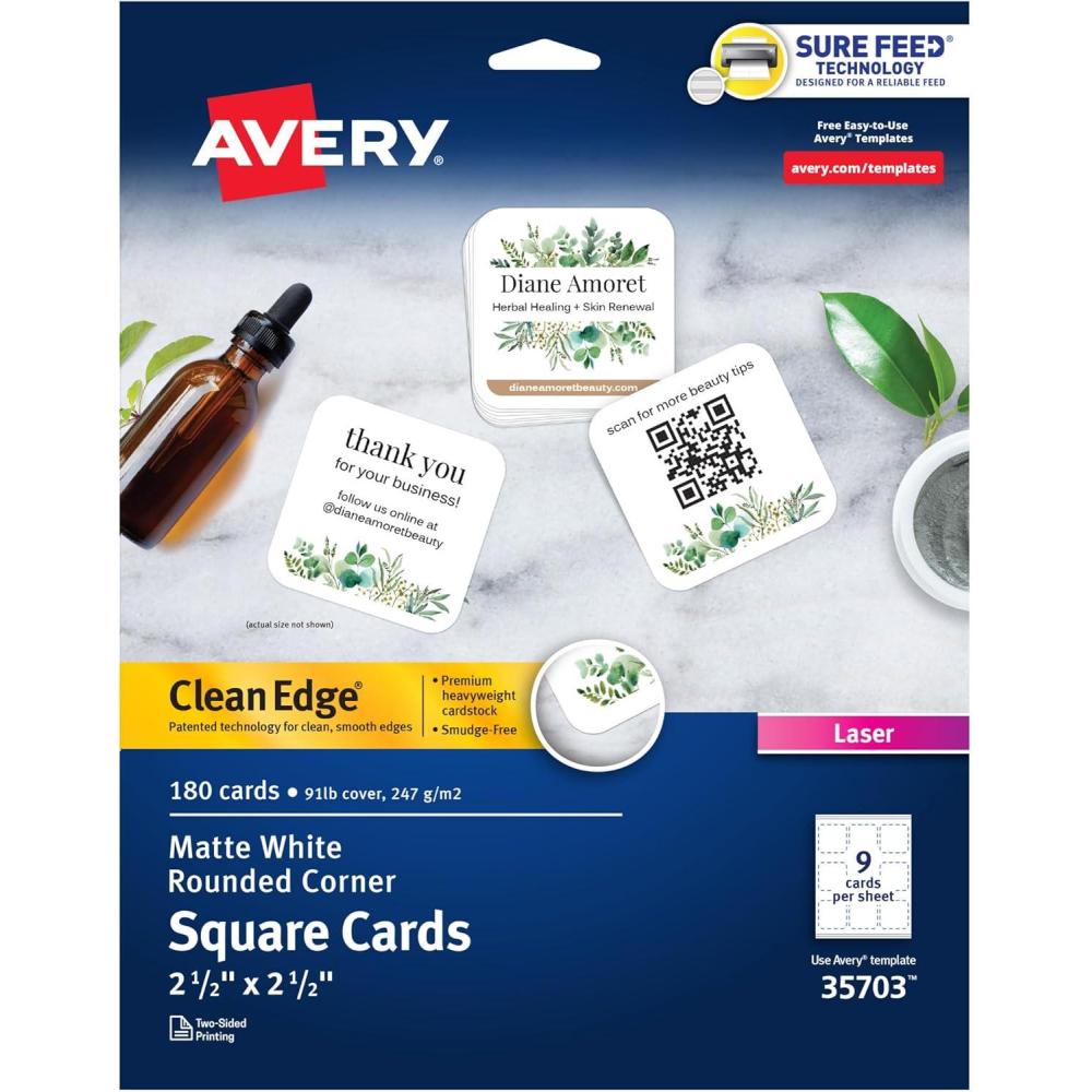 Make a lasting impression on important clients, associates and prospective customers with Avery 5871 Clean Edge Business Cards. This pack of 200 first-rate customizable business cards is made from quality cardstock with a weight of 91lbs / 247gsm, and offers an impressively substantial look and feel. If you need professional quality business cards, customer loyalty cards, appointment reminder cards or more, these 2″ x 3.5″ cards are an exceptional way to stand out from the crowd. These white business cards have innovative Clean Edge technology for quick and easy separation, giving you the cleanest, smoothest edges of any business card on the market. Also, proprietary Avery Sure Feed technology helps reduce misalignments, minimize paper jams, and avoid wasted projects when printing on your laser printer. Whether you have your own design or you're creating one from scratch, take your brand or business to the next level with Avery Design & Print Online, which makes it easy to create and print double-sided customizable cards from your own home or business. The free browser-based software has everything you need to design business thank you cards, appointment cards, reward cards and more. Try it out today on the Avery website and print at home or in the office on your laser printer.