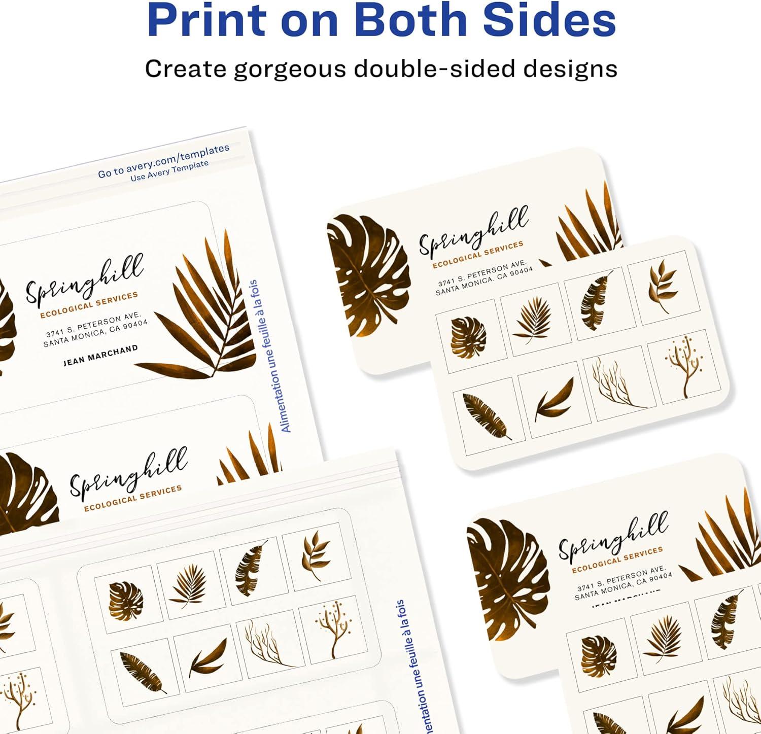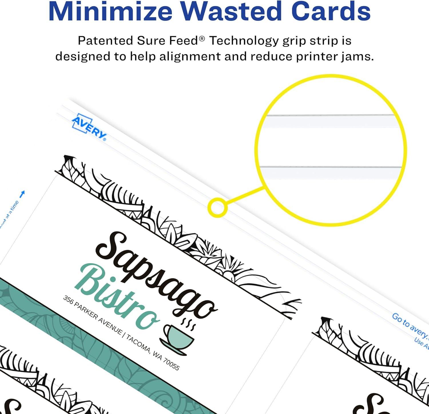Each sheet of business cards features proprietary Avery Sure Feed technology designed to help with alignment and reduce printer jams