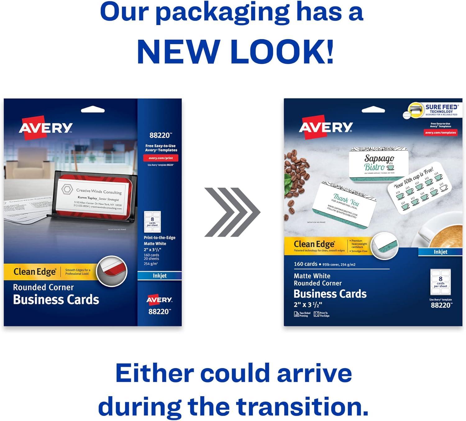 Avery Clean Edge Printable Business Cards with Sure Feed Technology, Rounded Corners, 2″ x 3.5″, White, 160 Blank Cards for Inkjet Printers (88220)(One Size)