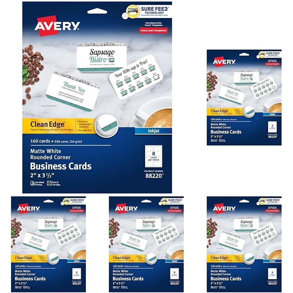 Avery Clean Edge Printable Business Cards with Sure Feed Technology, Rounded Corners, 2" x 3.5", White, 160 Blank Cards for Inkjet Printers (88220)(One Size (Pack of 5))