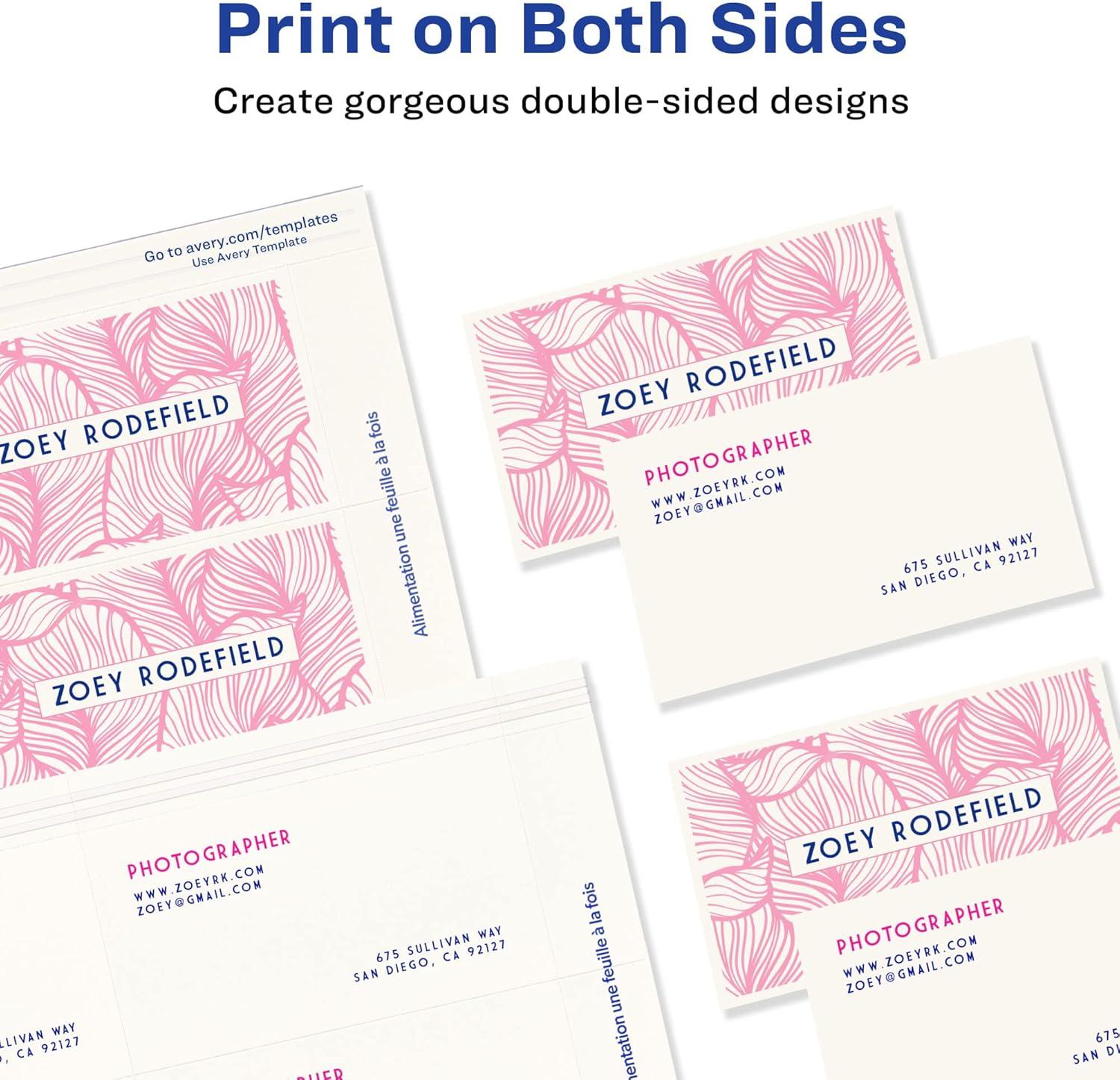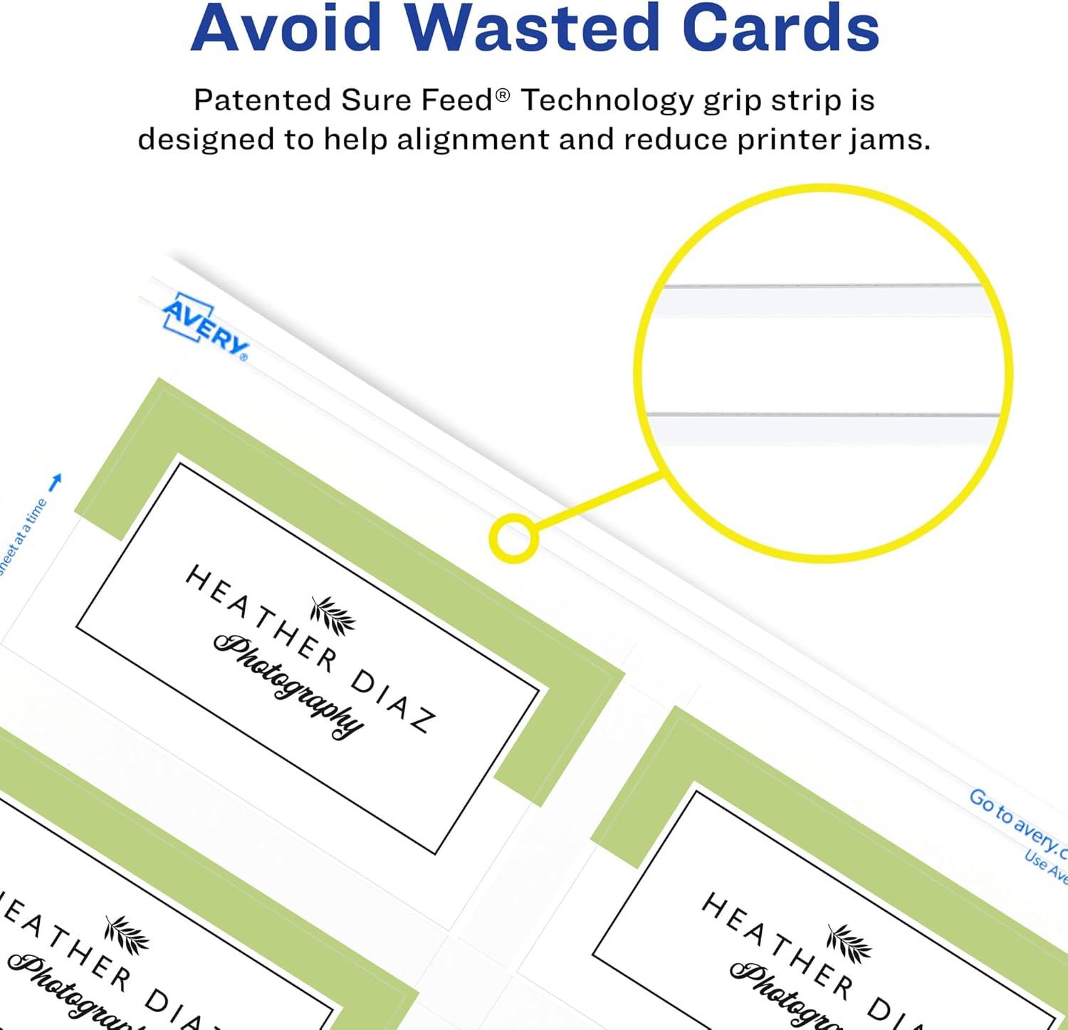 Each sheet of business cards features proprietary Avery Sure Feed technology designed to help with alignment and reduce printer jams