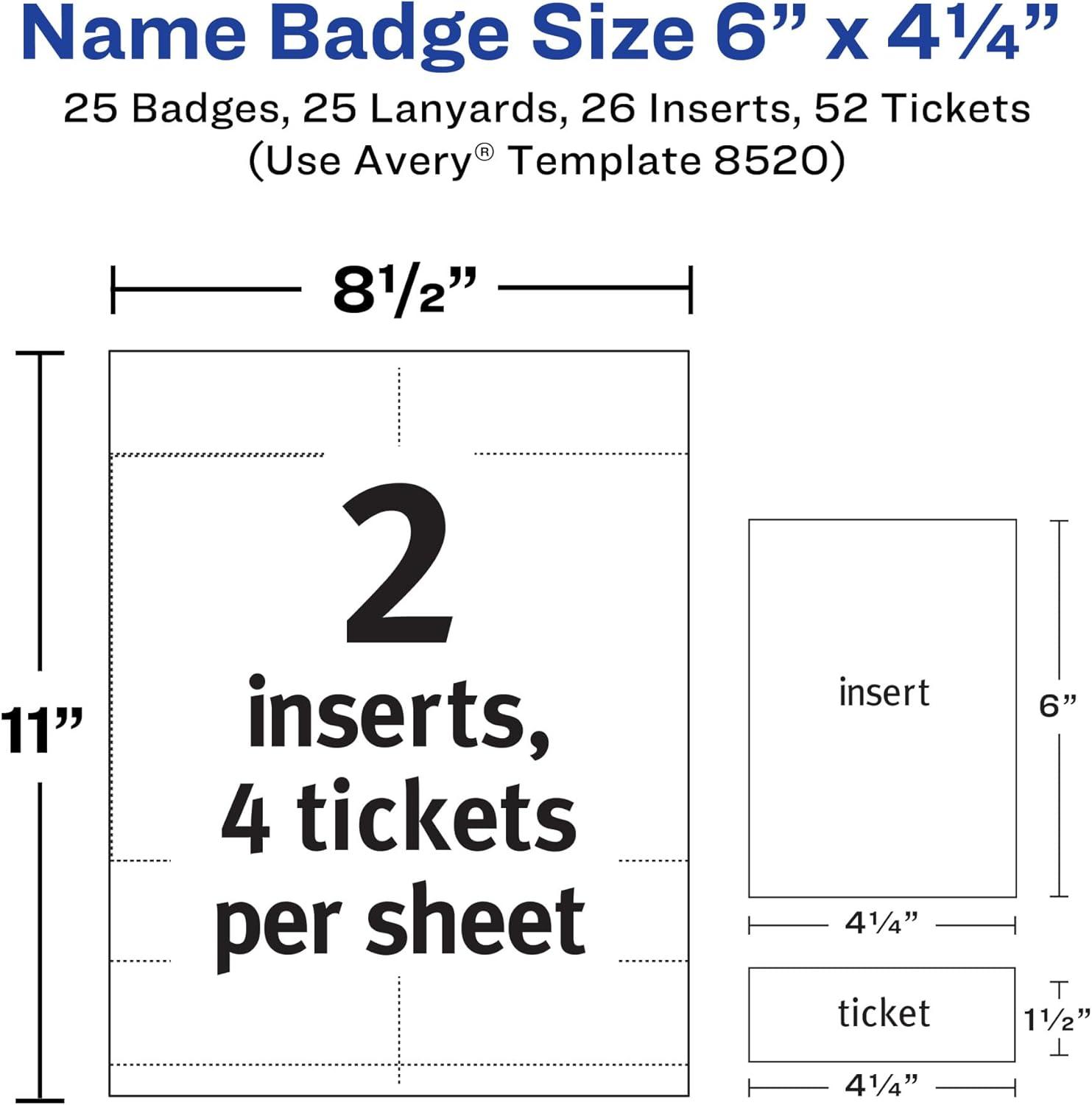 Avery Customizable Name Badges, 6″ x 4.25″, Laser/Inkjet Printable Inserts Including Tickets, 25 Vertical Name Tag Holders, Includes Lanyards (8520)(25)