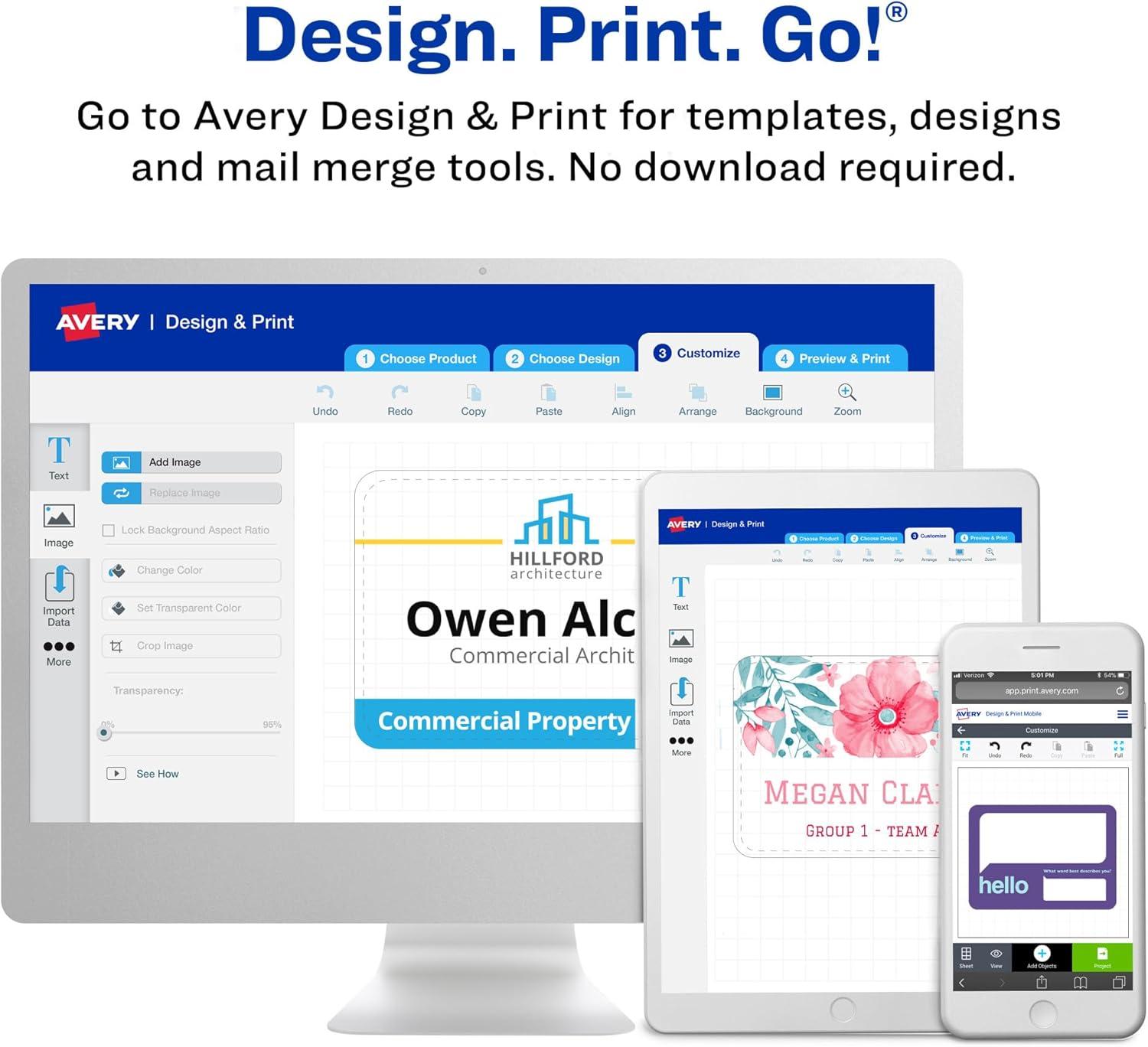 Quickly create custom name badges with personal titles, company names, logos, and more using Avery designs and templates