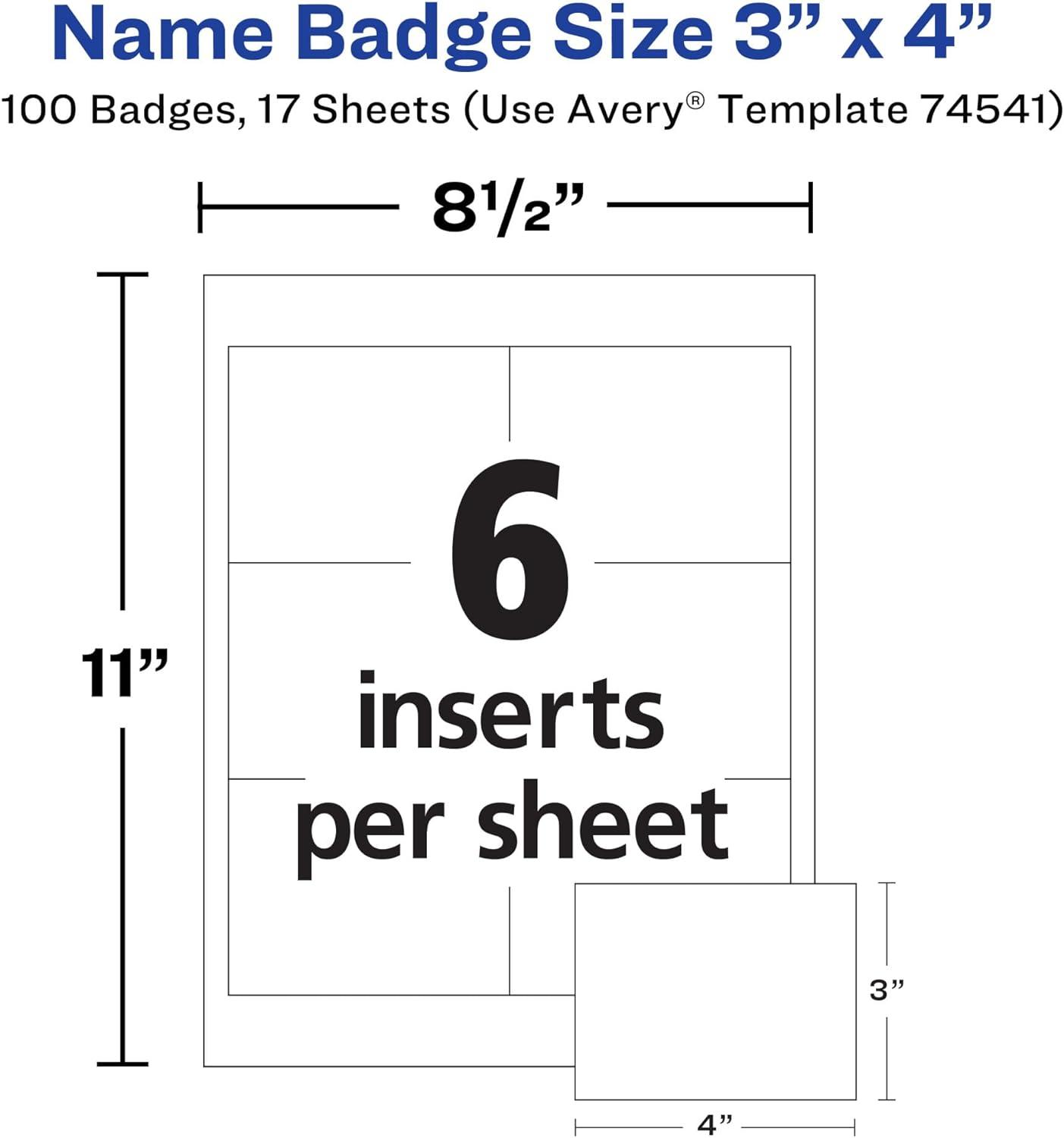 Creating high-quality, professional name tags is simple and stress-free with Avery 74541 name badge clips. This pack of 100 name badges comes with top-loading clear badge holders that each feature a garment-friendly clip that holds firmly without damaging fabric and swivels for easy attachment. The durable, soft plastic holders are reusable, and the pocket-style design makes loading inserts quick and easy. Effortlessly create quality custom name tags with company names, personal titles, logos, and more using templates and designs available at Avery Design & Print Online. Try it out on the Avery website today, and print with your laser or inkjet printer. The premium-quality white cardstock inserts feature ultra-fine perforations to eliminate rough edges for a high-quality, professional look. Self-adhesive, garment-safe clips are included for easy attachment to the back of your name badge holder. Ideal for permanent or temporary identification, these customizable name badges are perfect for staff ID badges, business meeting badges, networking event tags, photo ID cards, conference name tags, kids ID cards, and more. This name badge kit comes with everything needed to make 100 name badges, including 3″ x 4″ printable inserts and horizontal badge holders with clips.