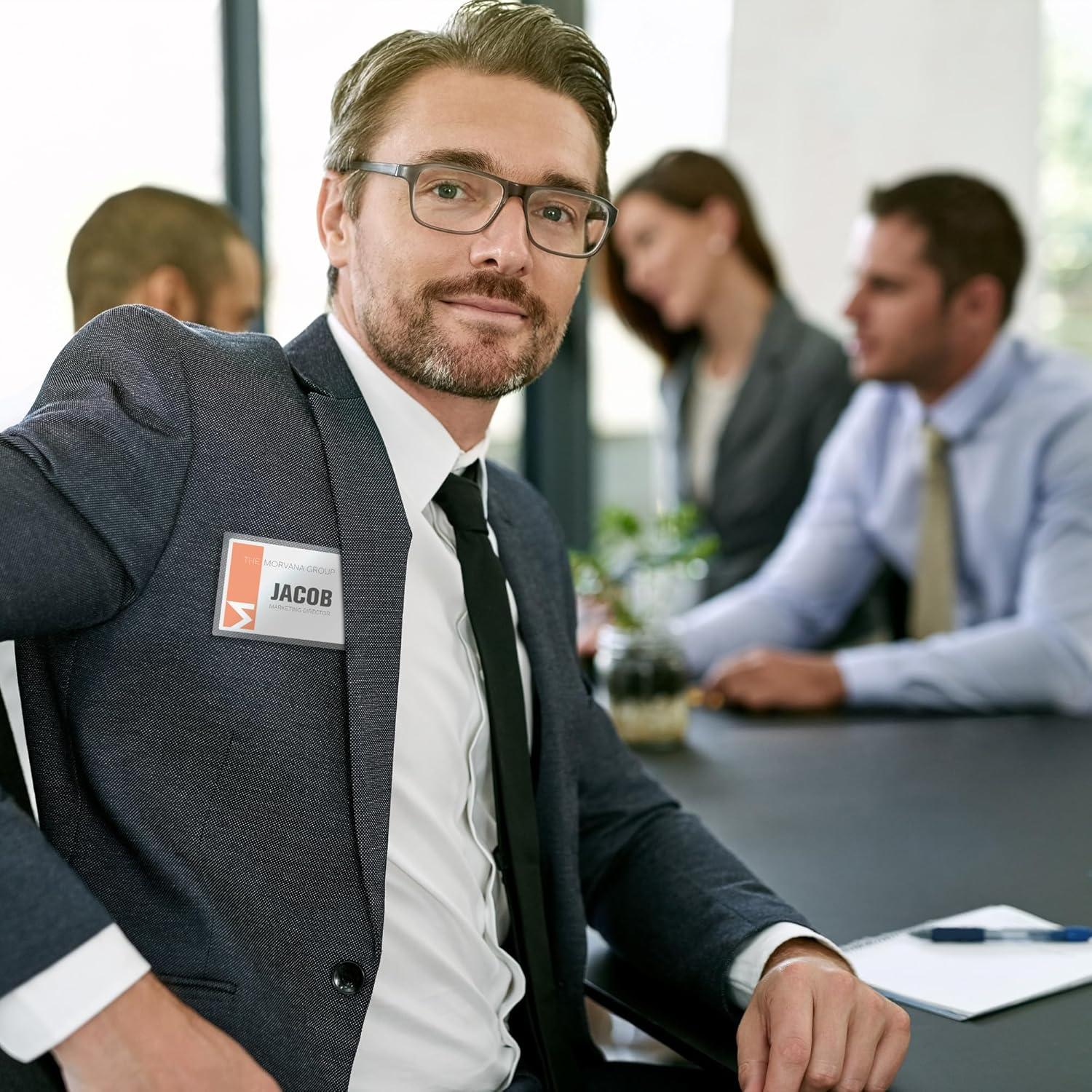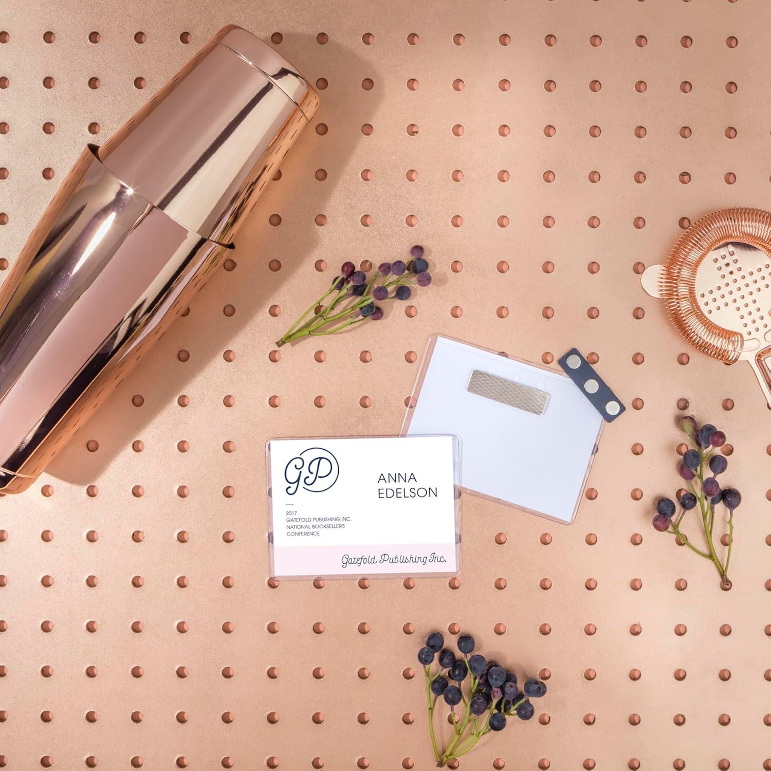 Quickly and easily create customized name badges from the convenience of your home or workplace with Avery 8781 Magnetic Name Badges. This pack of 48 blank name badges with magnets is perfect for professional and social gatherings, including meetings, parties, trade shows, conferences, mixers, and more. Each clear badge holder features strong magnets that hold it in place without damaging fabric or flipping over. The durable PVC plastic ID holders are reusable and feature a pocket-style design for easy loading and unloading. Effortlessly create custom name tags with company names, personal titles, logos, and more using templates and designs available at Avery Design & Print Online. Try it out on the Avery website and print with your laser or inkjet printer. Printable inserts come in 8-1/2″ x 11″ white cardstock sheets that feature ultra-fine perforations for smooth edges and a high-quality, professional look. Ideal for permanent or temporary identification, these customizable name badges can be used as staff ID badges, business meeting badges, networking event tags, conference name tags, kids ID cards, and more. This name badge kit comes with everything needed to make 48 name badges, including 3″ x 4″ printable inserts and horizontal badge holders with magnets.