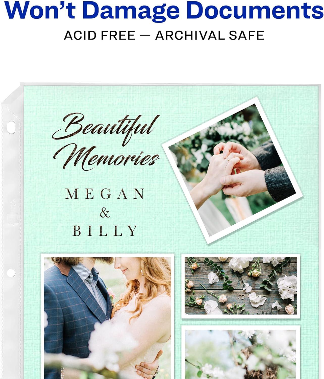 Avery Diamond Clear Heavyweight Sheet Protectors 74400 are designed to protect your papers and show them off. These durable, acid-free, archive-safe protectors ensure that your pages stay in top condition over time and that print remains on your papers, rather than transferring to the sheet protector. Each one of these convenient pages is designed to hold one sheet of paper and to offer a clear view of critical text and images, while clear binding edges round out the professional look of presentations and other important documents.