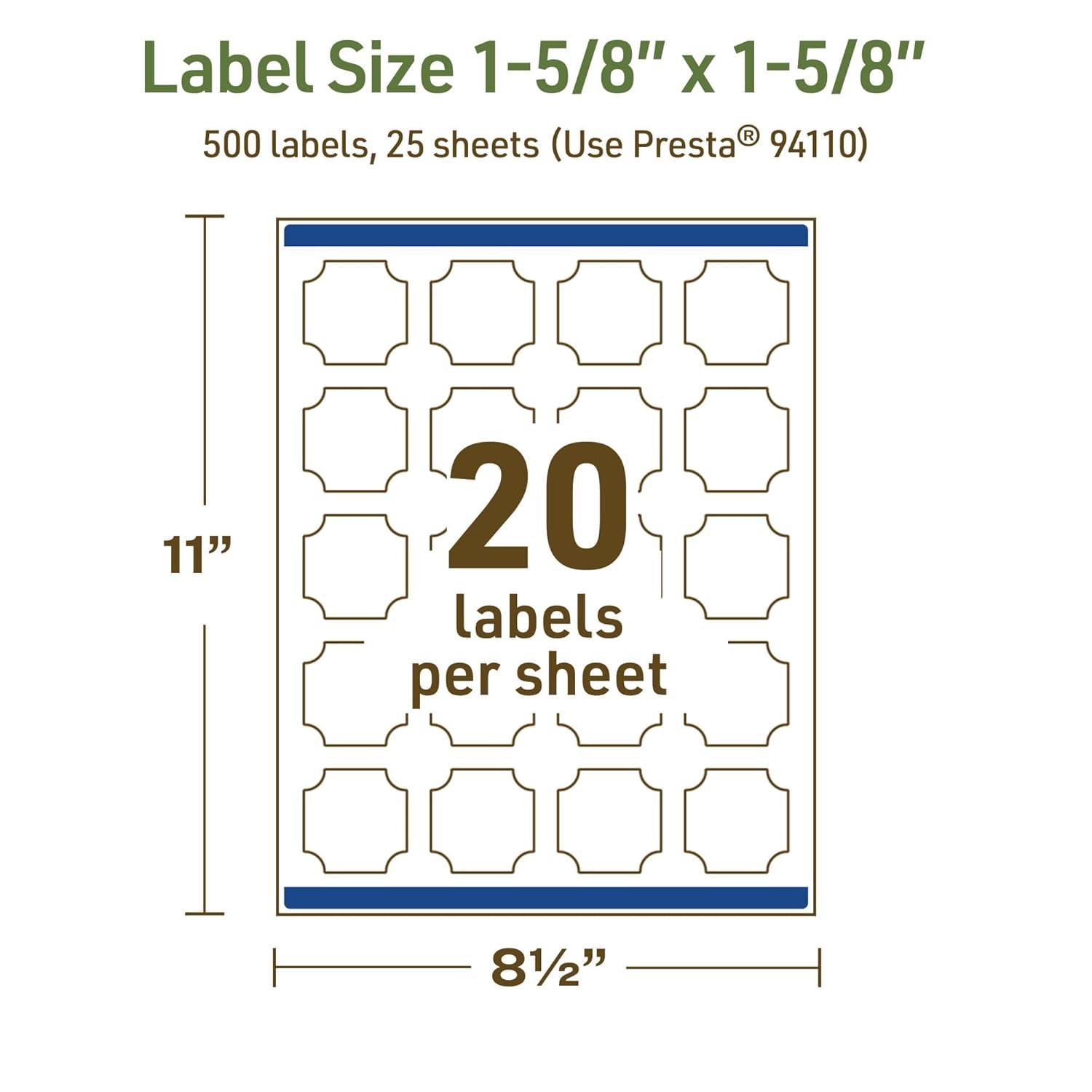 Avery Dissolvable Square Scalloped Labels, Sure Feed Technology, 1-5/8" x 1-5/8", Matte White, Print-to-The-Edge, Laser/Inkjet Printable, 100 Labels Total(500 labels)
