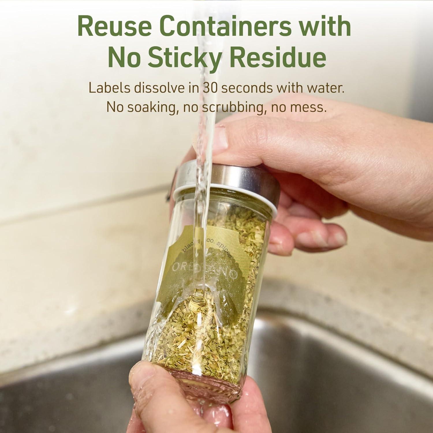 Enjoy hassle-free cleanup with dissolvable labels that wash away completely with water, leaving no sticky residue behind, so containers stay clean without scrubbing or soaking