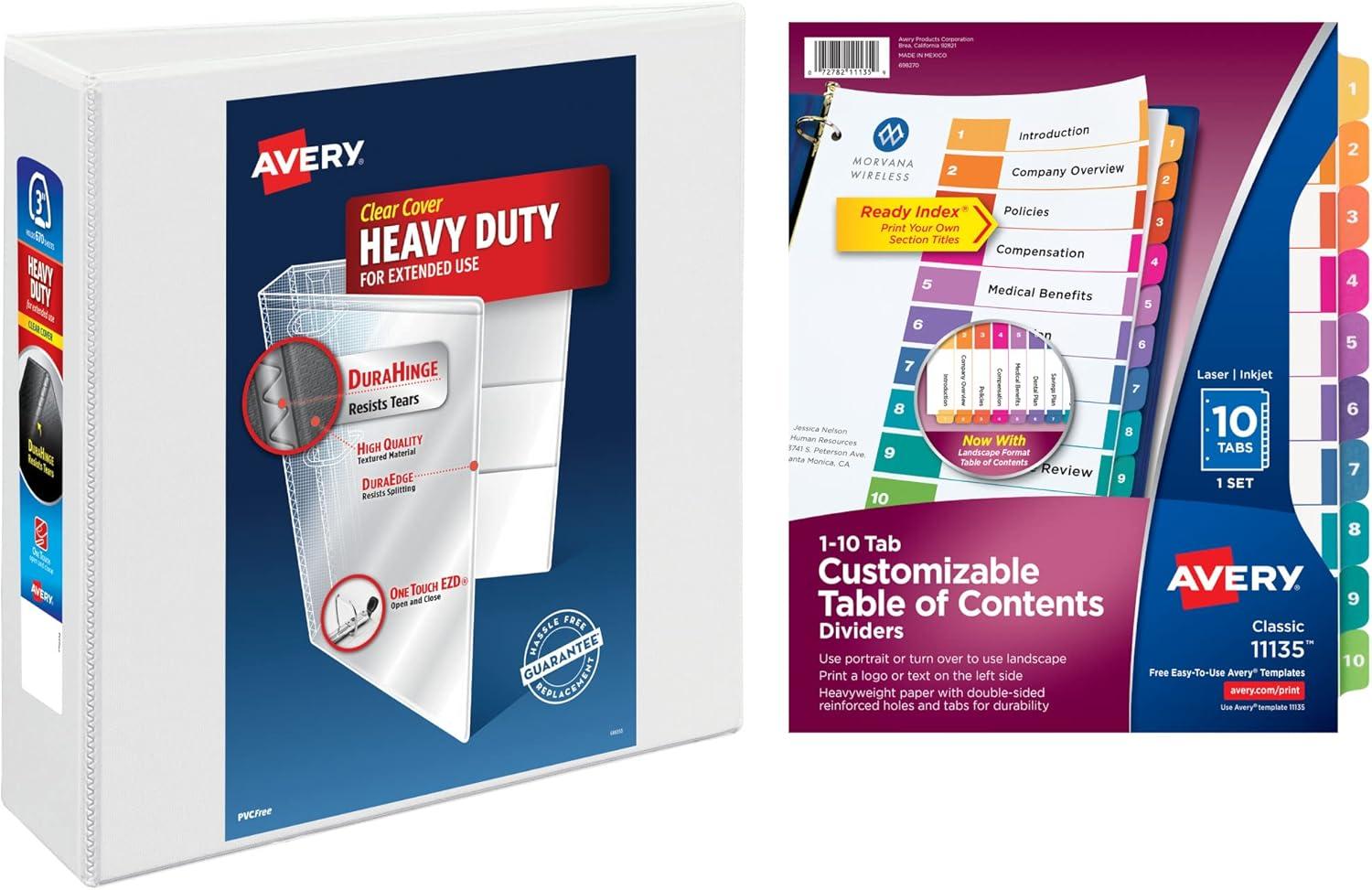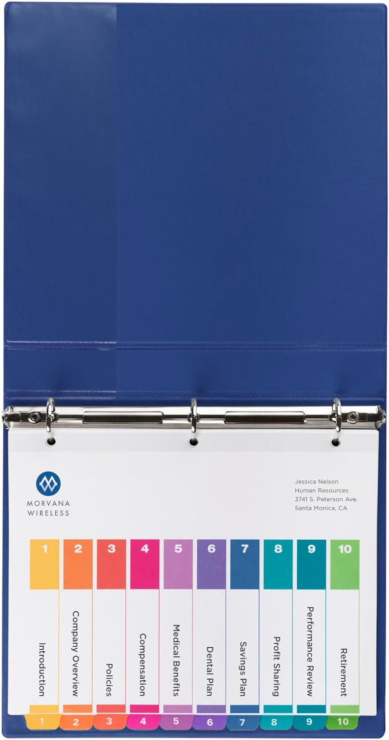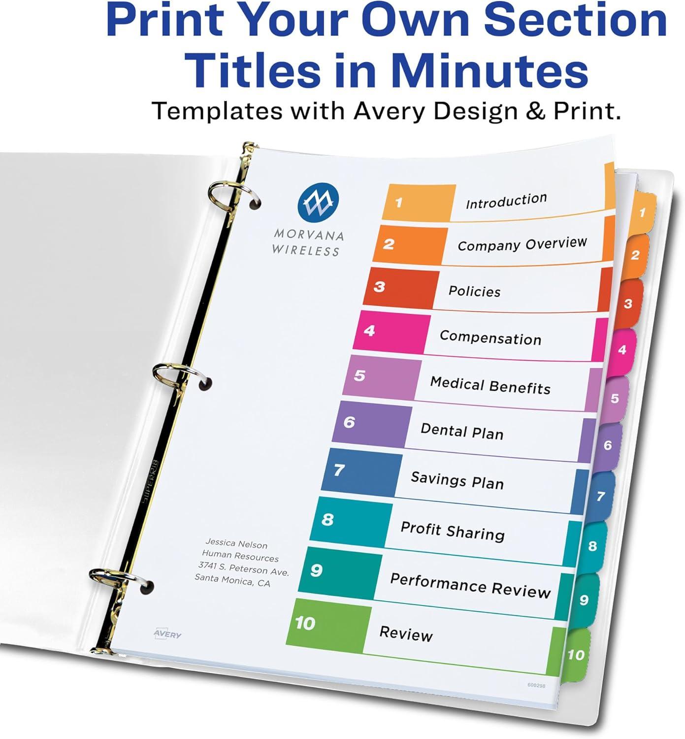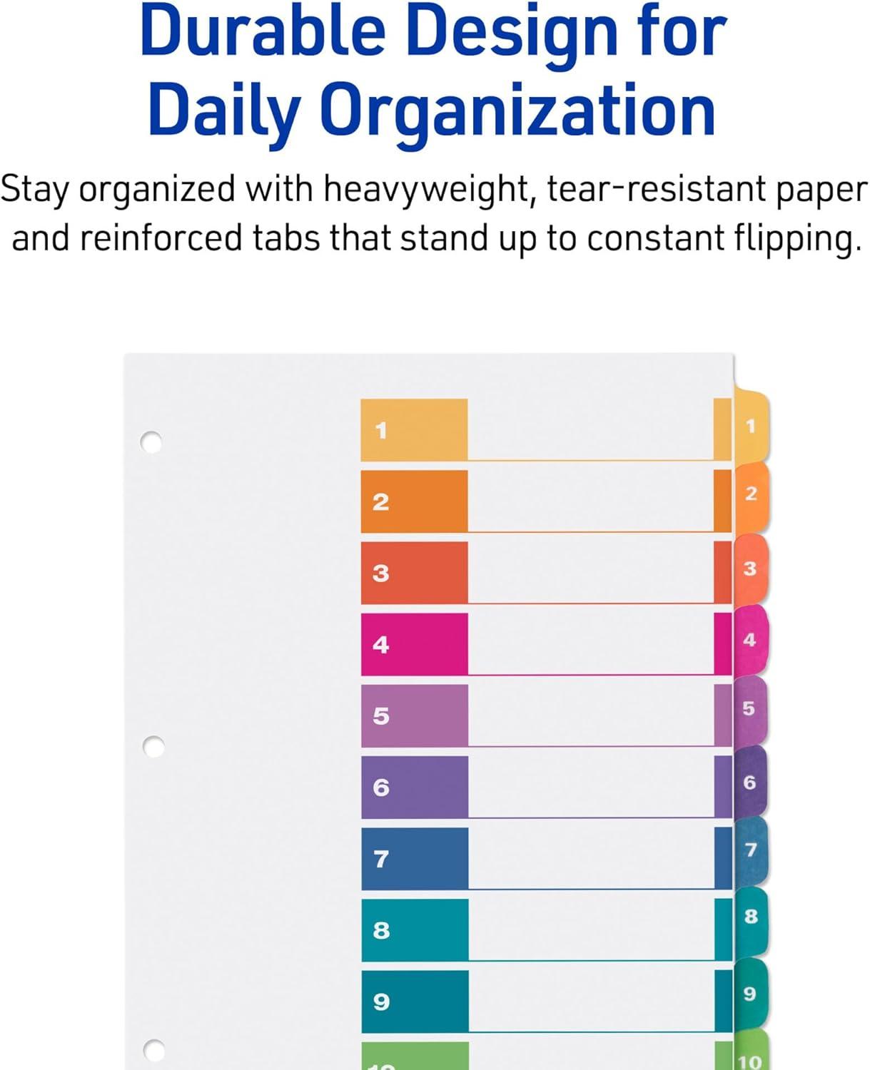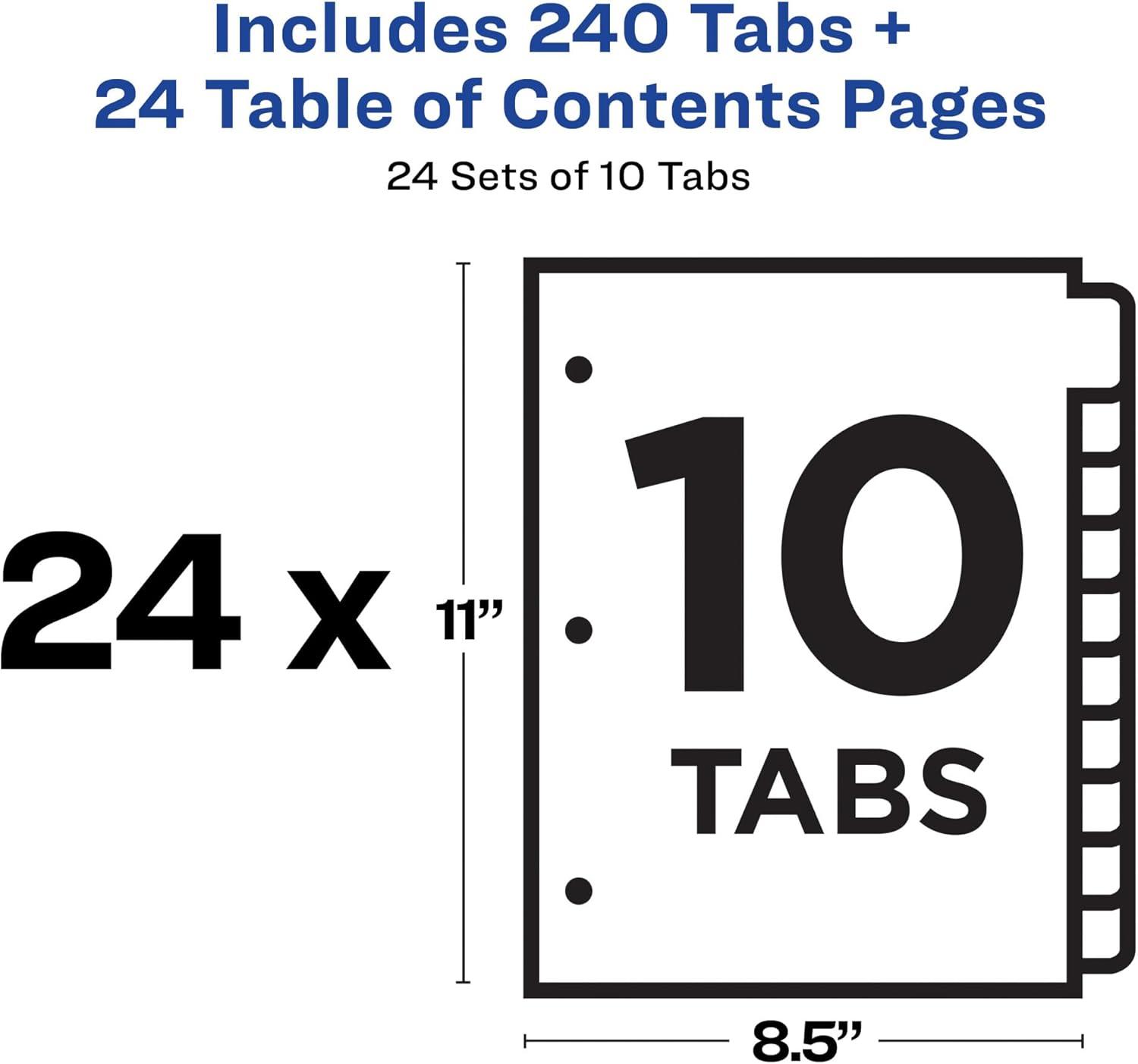 Avery Dividers for 3 Ring Binders, 5 Tabs per Set, Customizable Table of Contents, Multicolor Tabs, Great for Organizing High-Volume Reports, Projects, and More (24 Sets of 11167)(10 tabs)