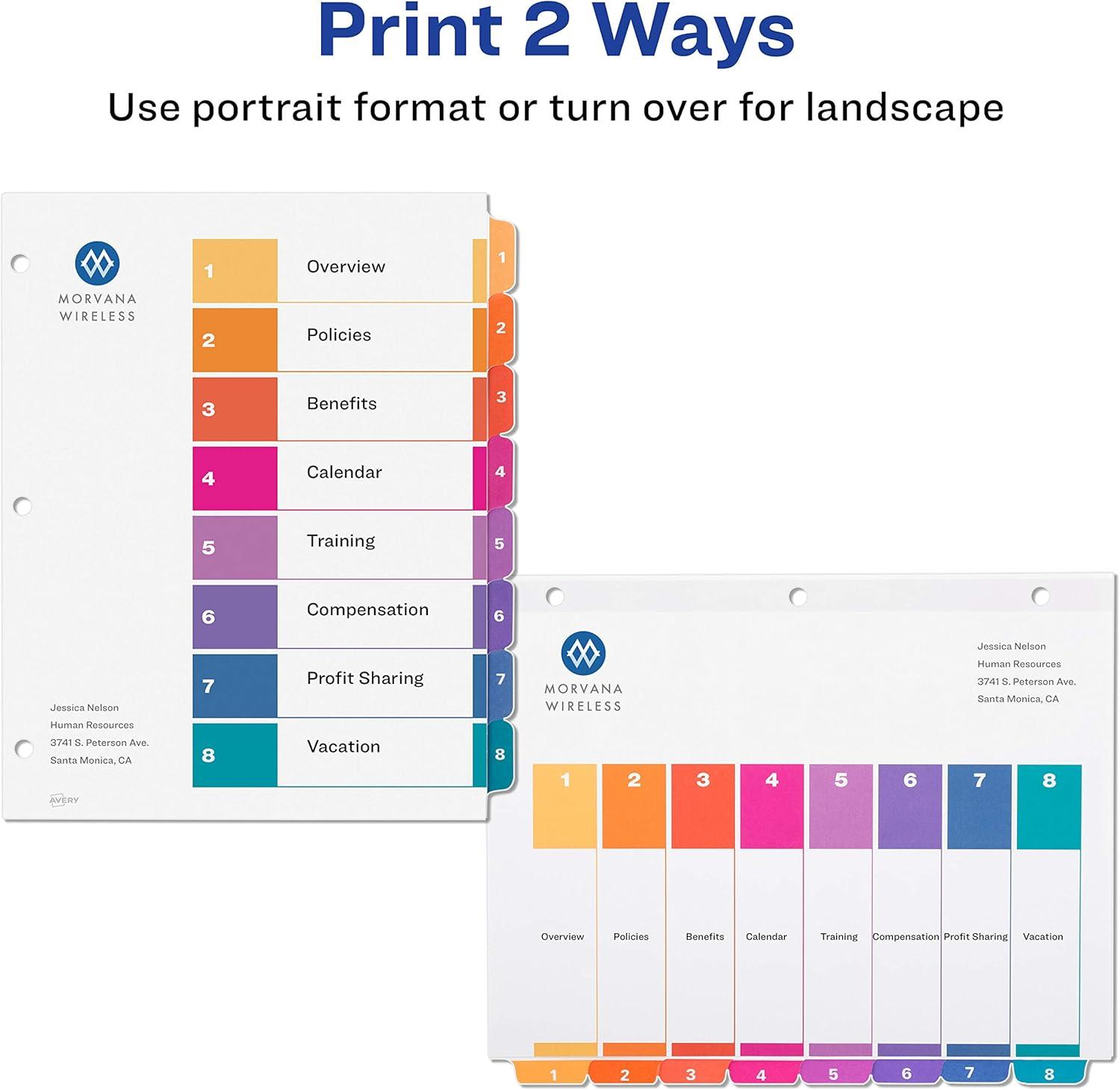 Avery Dividers for 3 Ring Binders, 5 Tabs per Set, Customizable Table of Contents, Multicolor Tabs, Great for Organizing High-Volume Reports, Projects, and More (24 Sets of 11167)(8 tabs)