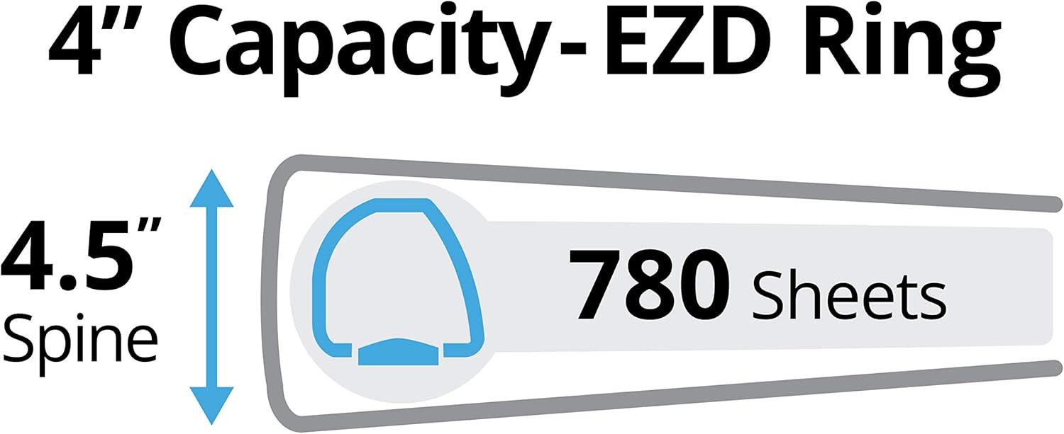 Ezd ring holds 40-50% more paper than basic 4 inch binder; 780-SHEET capacity