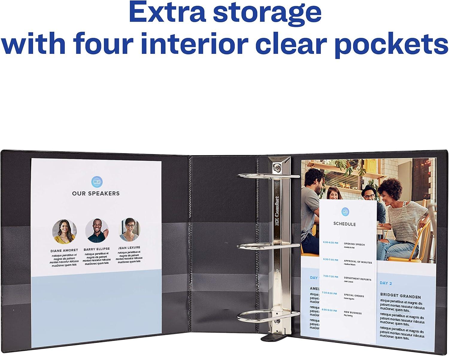 Experience durability and capacity with the Avery Durable View Binder. This 3-ring binder features a 4-inch EZD ring that holds up to 780 sheets of letter-sized paper, providing 40-50% more capacity than standard 4-inch binders. The tear-resistant spine (DuraHinge) and flexible split-resistant edges (DuraEdge) ensure longevity, while the back-mounted rings allow pages to lie flat for easy reference. Customize your binder with free templates and designs on Avery's Design & Print Online platform.