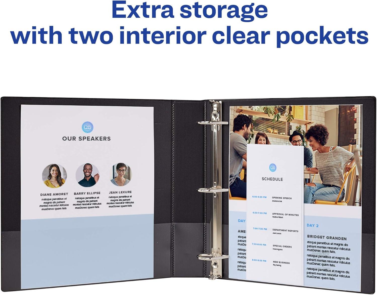 Enjoy additional storage in each 3 ring binder with the two interior clear pockets made from nonstick archival-safe material designed to prevent ink transfer
