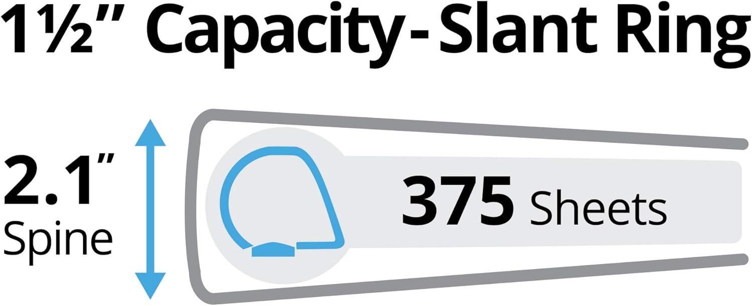 Make sure important paperwork stays with you for the long haul by storing it in this Avery 17024 Durable View Binder in blue. Each 1.5 inch 3 ring binder offers more protection than basic binders with its tear-resistant DuraHinge spine and flexible DuraEdge split-resistant edges. Plus, the deep-weave polypropylene cover makes it resistant to tears, bubbling, and surface wrinkles. Inside, back-mounted rings ensure pages lay flat and turn easily. There’s even extra storage with two interior pockets made of nonstick material that won't lift or transfer ink, keeping documents neat and clean. The ring binder features a 2.1-inch spine and 1.5-inch slant rings that hold up to 375 sheets of 8.5″ x 11″ paper, dividers, or sheet protectors. Perfect for use as a report binder, recipe binder, school binder, presentation binder, photo album, and more. For those who collect trading cards, pair this card binder with Avery's Trading Card Storage Sheets for effortless organization. No matter what you use it for, you can easily personalize your own custom binder using Avery Design & Print and the available cover binder templates, fonts, and designs.