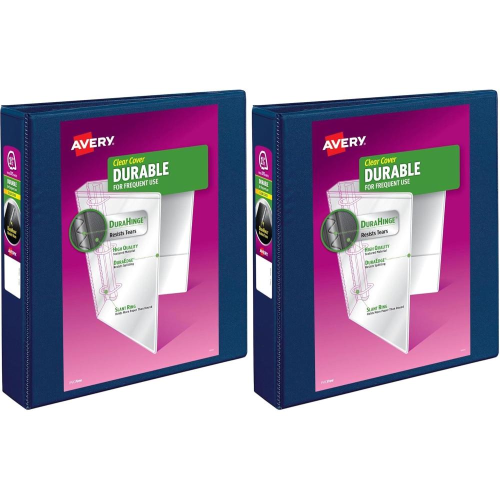 Avery Durable View 3 Ring Binders, 1.5 Inch Slant Rings, 375-Sheet Capacity, DuraHinge, 2.1 Inch Wide Spine, Customizable Clear Covers and Spine, 1 Blue Binder (17024)(1.5" (Pack of 2))