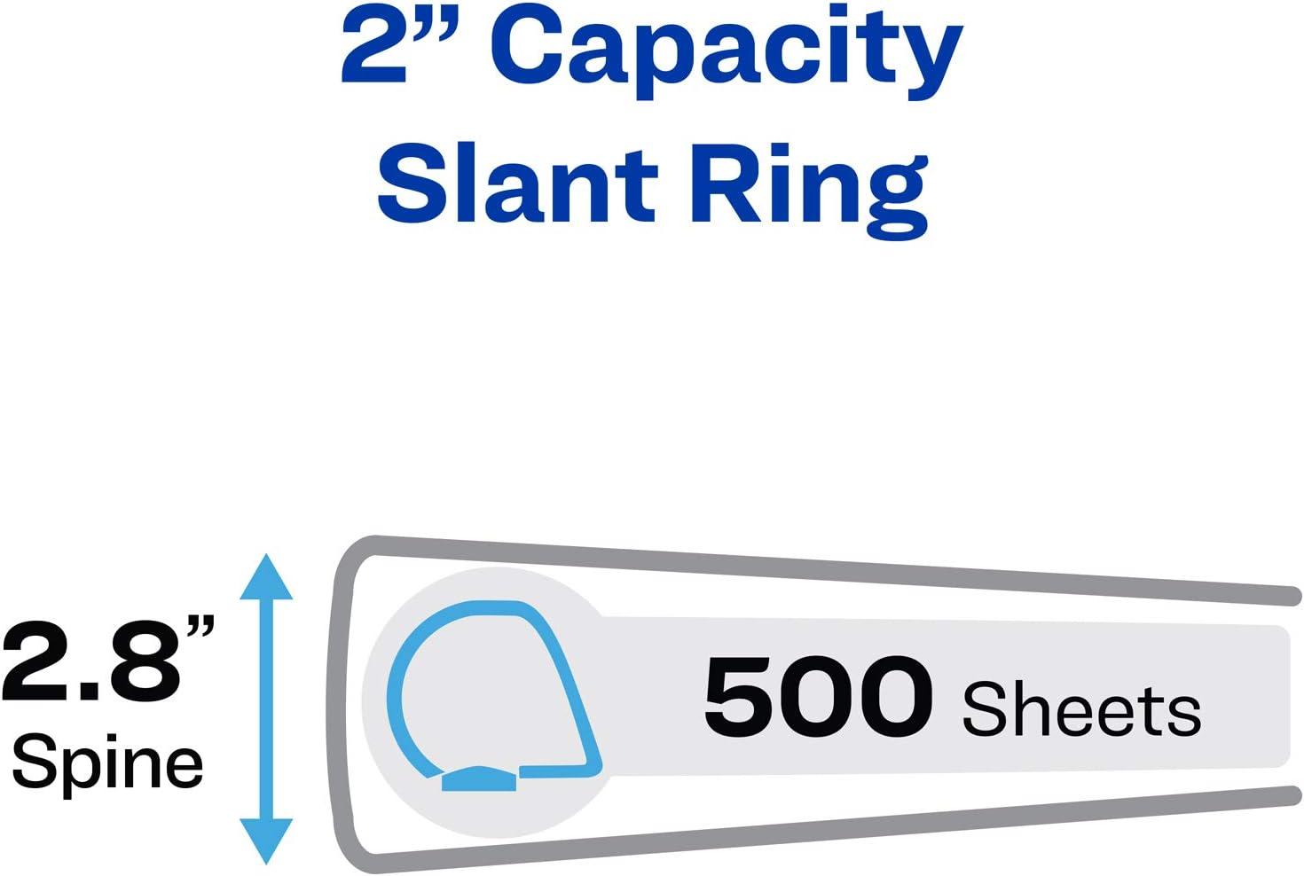 Easily open and close the 2 inch slant rings that can hold up to 530 sheets and are back-mounted to keep pages flat; each binder cover has a 2.8 inch wide spine