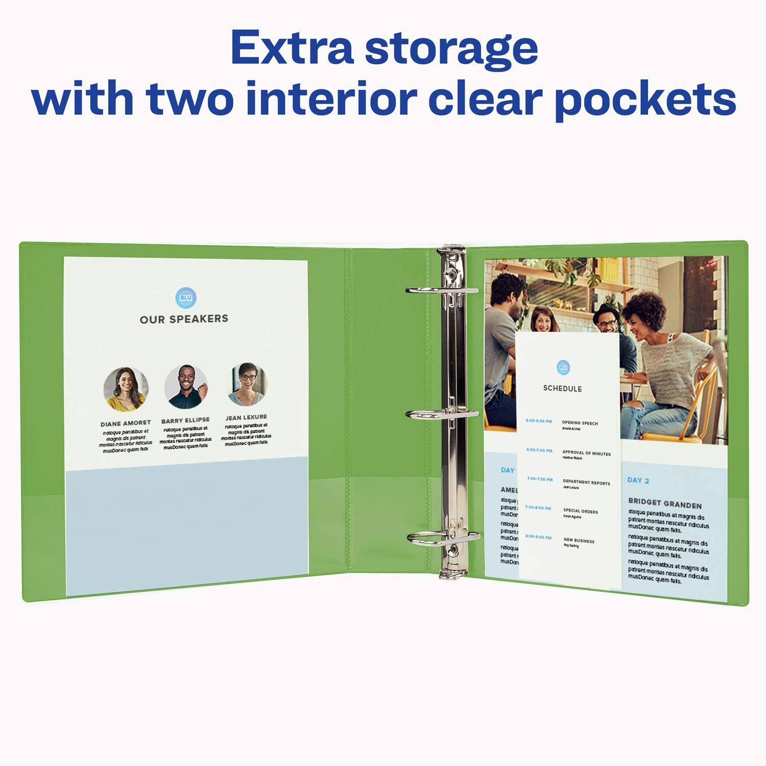Enjoy additional storage in each 3 ring binder with the two interior clear pockets made from nonstick archival-safe material designed to prevent ink transfer