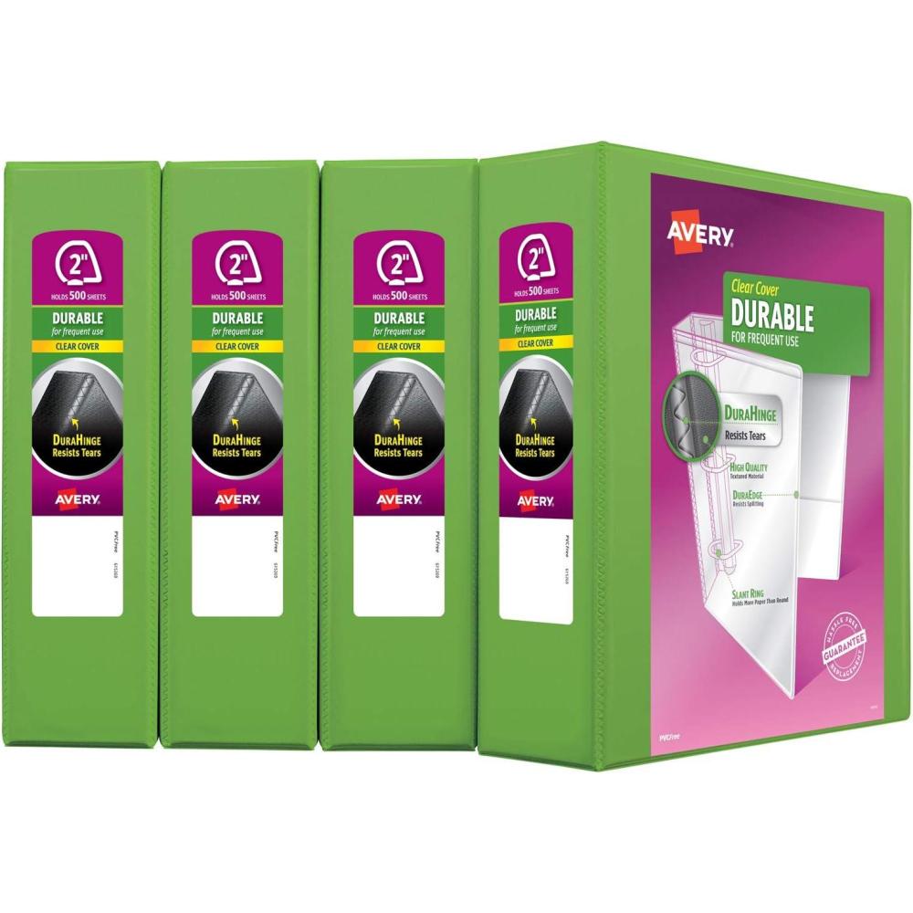 Avery Durable View 3 Ring Binders, 2 Inch Slant Rings, 530-Sheet Capacity, DuraHinge, 2.8 Inch Wide Spine, Customizable Clear Covers and Spine, Dark Blue Binders (4-Pack of 17034)(Green)
