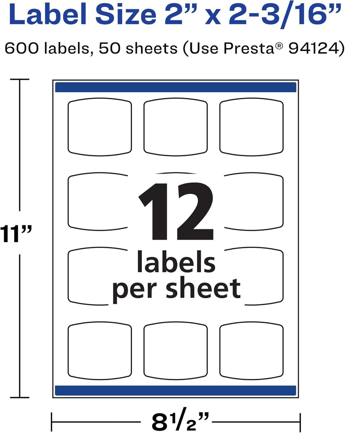 Avery Durable Waterproof Arched Square Labels, Sure Feed Technology, 2″ x 2-3/16″, 120 Total, Oil and Tear-Resistant Waterproof Labels, Print-to-The-Edge, Laser/Pigment-Based Inkjet Printable(600 labels)