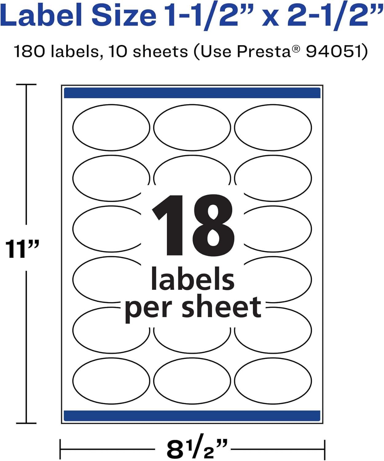 Avery Durable Waterproof Oval Labels with Sure Feed, 1.5″ x 2.5″, 180 Tear-Resistant Labels for Laser and Pigment-Based Inkjet Printers(450 labels)
