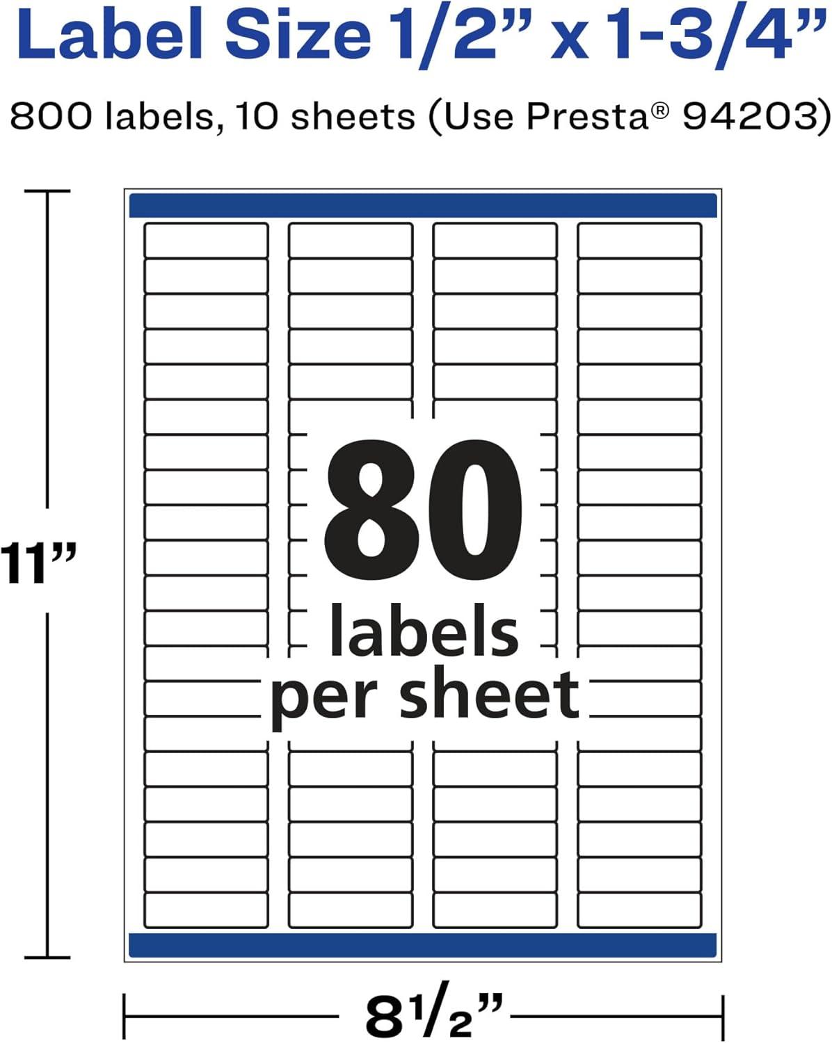 Avery Durable Waterproof Rectangle Labels, Sure Feed Technology, 0.5" x 1.75", 800 Total, Oil and Tear-Resistant, Waterproof, Laser/Pigment-Based Inkjet Printable(800 labels)