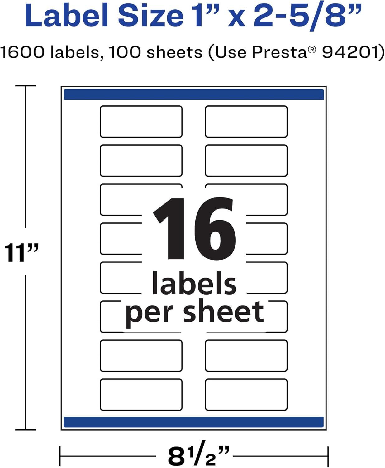 Avery Matte White Rectangle Labels, Sure Feed Technology, 1″ x 2-5/8″, 400 Matte White Printable Labels(800 Labels)