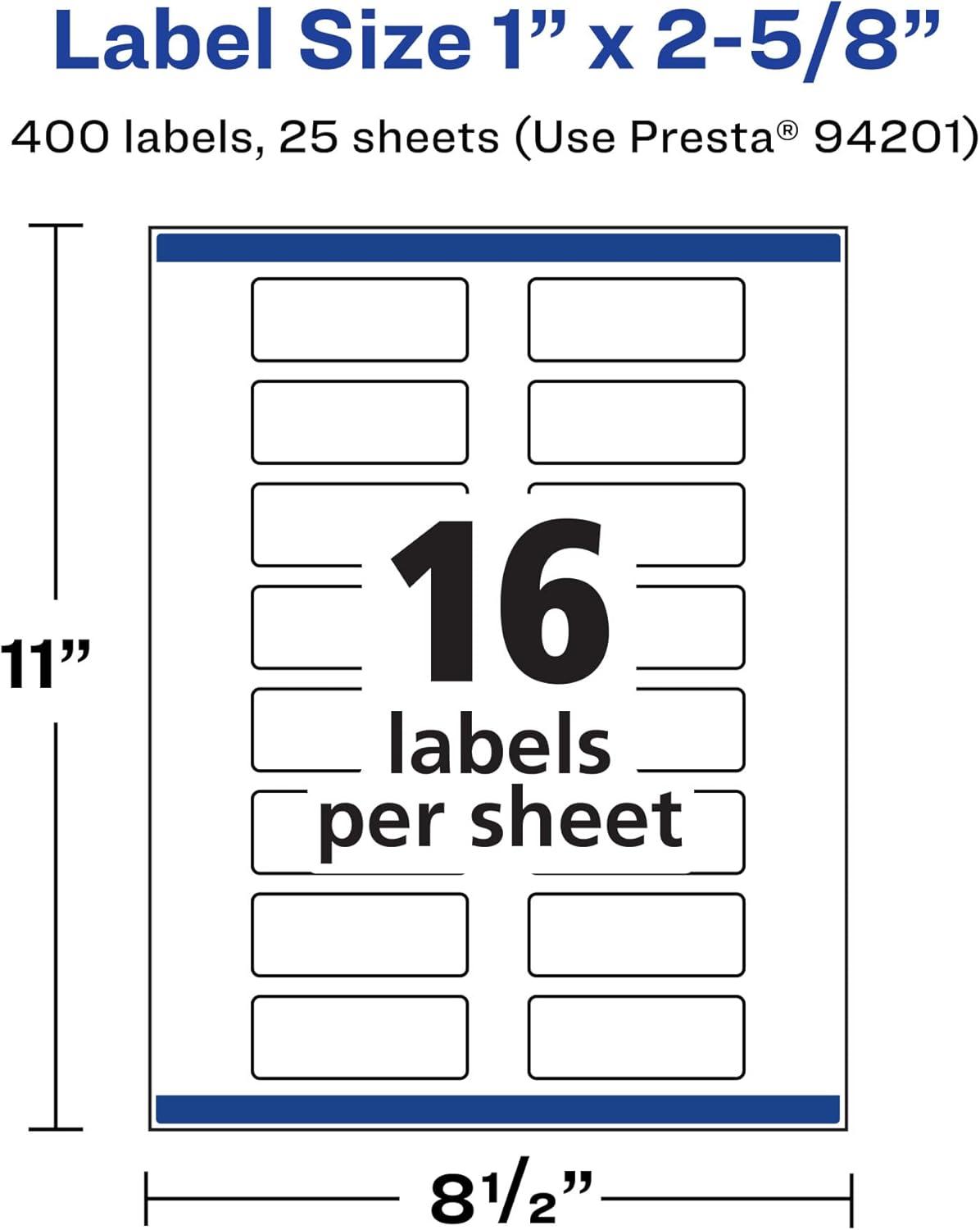 Avery Durable Waterproof Rectangle Labels, Sure Feed Technology, 1" x 2-5/8", 160 Total, Oil and Tear-Resistant Waterproof Labels, Print-to-The-Edge, Laser/Pigment-Based Inkjet Printable(400 labels)
