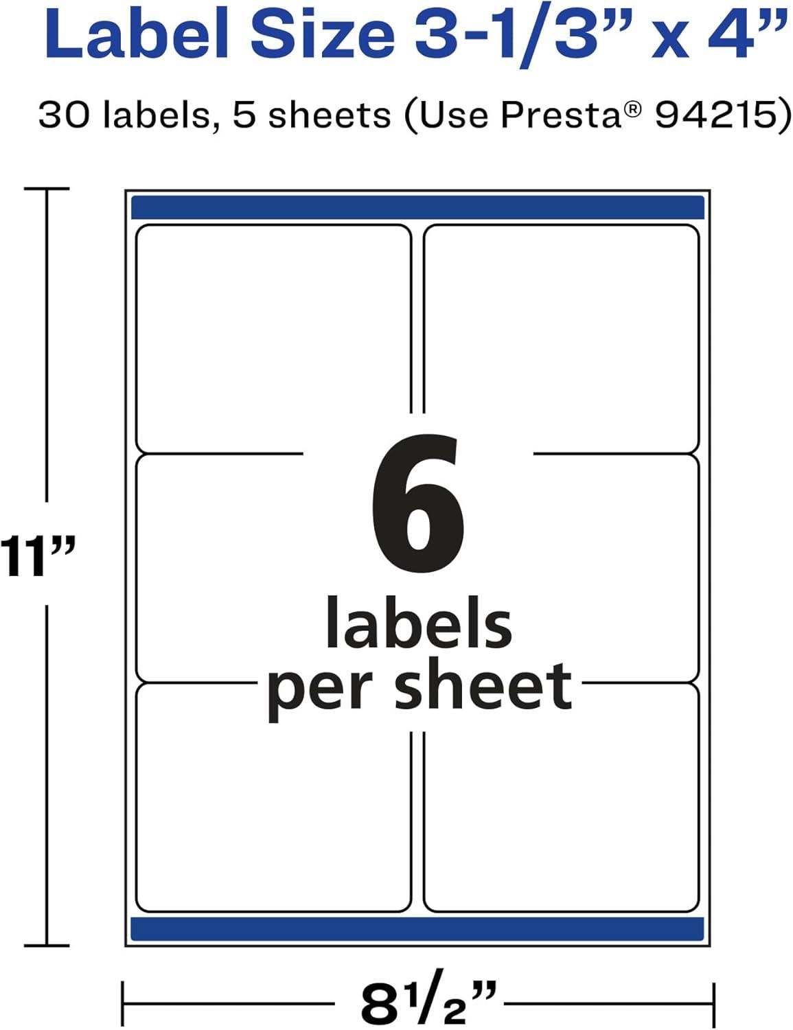 Avery Durable Waterproof Rectangle Labels, Sure Feed Technology, 3-1/3″ x 4″, 60 Total, Oil and Tear-Resistant, Waterproof, Laser/Pigment-Based Inkjet Printable(30 labels)