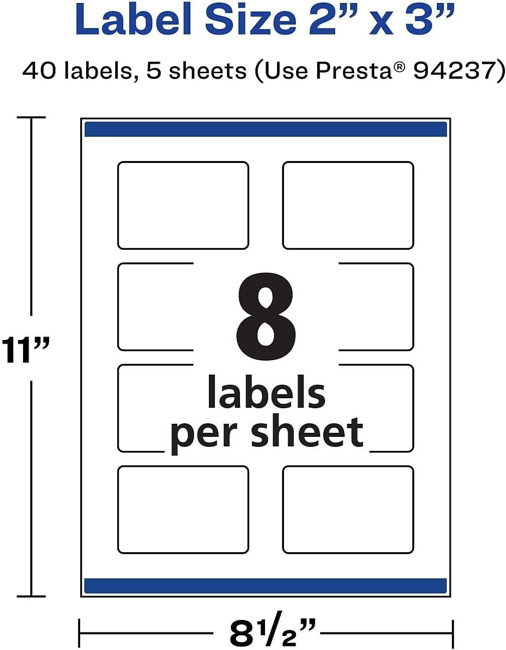 Avery Durable Waterproof Rectangle Labels, Sure Feed Technology, Print-to-The-Edge, 2" x 3", 80 Total, Oil and Tear-Resistant, Waterproof, Laser/Pigment-Based Inkjet Printable(40 labels)