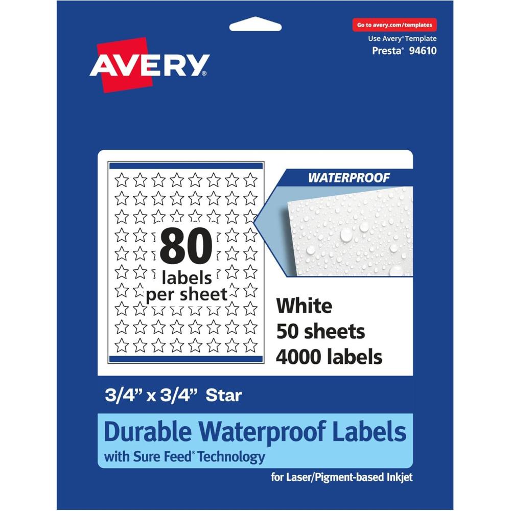 Avery Durable Waterproof Star Labels, Sure Feed Technology, 0.75″ x 0.75″, 800 Total, Oil and Tear-Resistant Waterproof Labels, Print-to-The-Edge, Laser/Pigment-Based Inkjet Printable(4 000 labels)